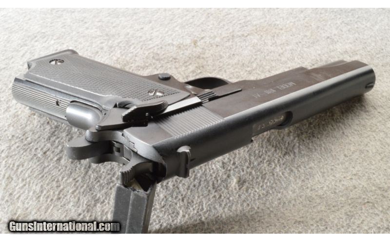 Description: This is a very nice Springfield 1911 A1 pistol in .45 ACP. The pistol has a double stack 14 round mag. The blue/black finish is in great condition with only a few minor scuffs. SOLD Caliber Info: .45 ACP. Chambers: Semi-Auto 14+1. Metal Condition: Very good. Wood Condition: The grips are like new. Bore Condition: Like new. Barrels: 5 inch with sights on the slide. Triggers: Single. Stock: Black synthetic checkered grips. Weight: 41 Oz. Sights: Raised notch rear and a small blade front. Extras: Comes with the case and an extra mag. Item Location: Owatonna, MN |