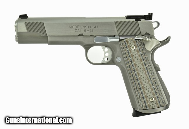 Description: Springfield 1911 A1 9mm caliber pistol. 5” Stainless target model with magwell and custom grips. Excellent condition.