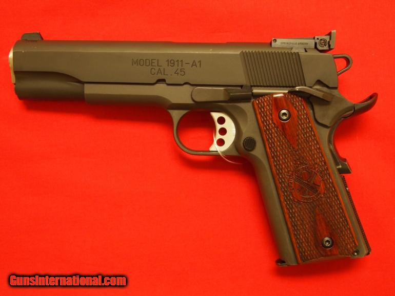 Description: Springfield 1911 Range Officer .45 ACP, 5 inch match grade barrel, bright shiny bore, adjustable rear sight, 7 round magazine, matte blue finish, beavertail safety grip, extended lightweight trigger, thumb safety, few handling marks, with box. Add 3% for credit cards $25.00 S&H SOLD |