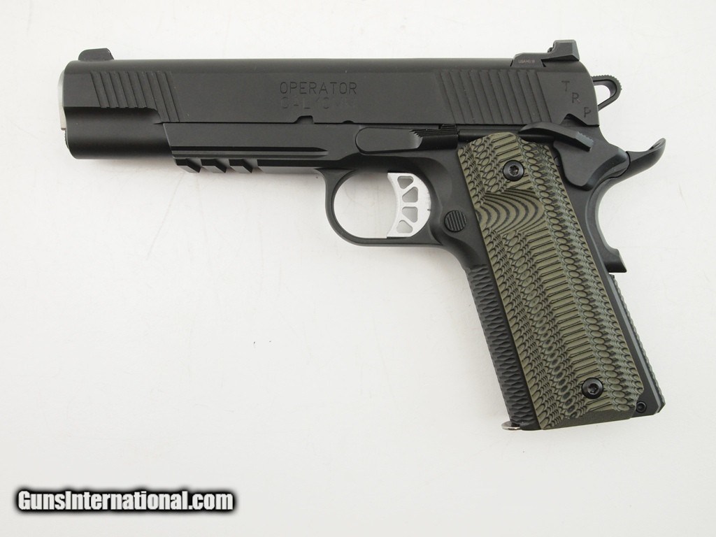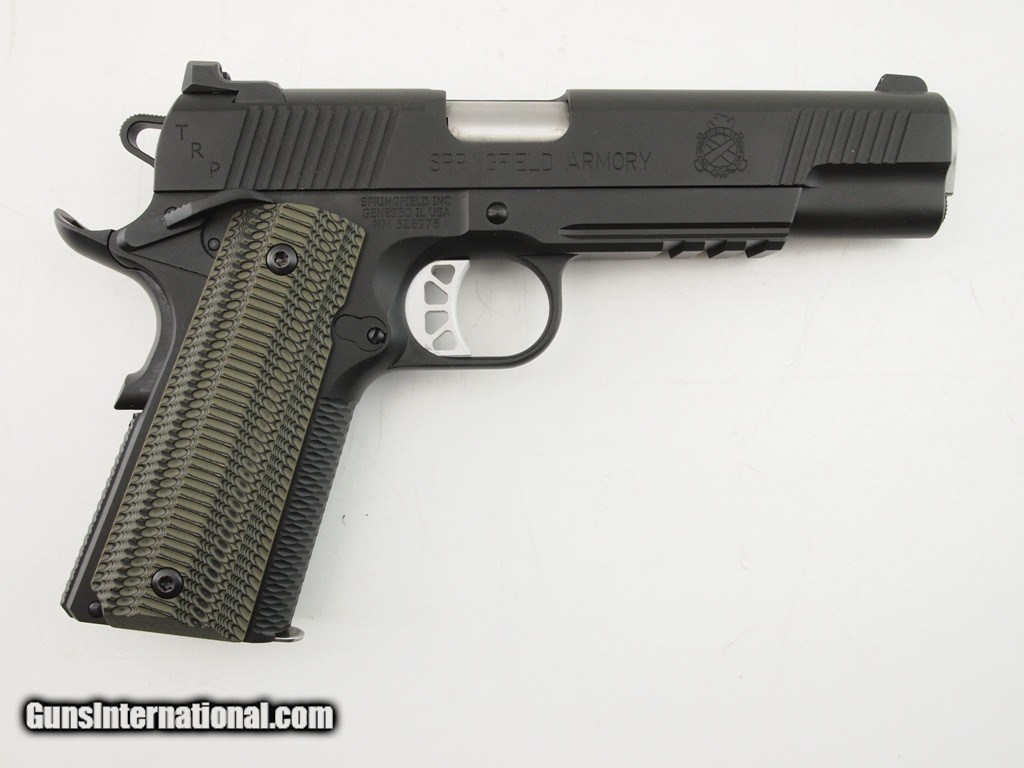Description: Springfield 1911 TRP 10 MM NIB, 5" Stainless Steel match grade bbl, night sights,black finish, G10 VZ® Alien Dirty Olive grips, skeletonized serrated trigger - hammer, textured front - back straps, accessory rail, and two 8 round magazines. Add 3% for Credit Card Shipping $25.00 SOLD |