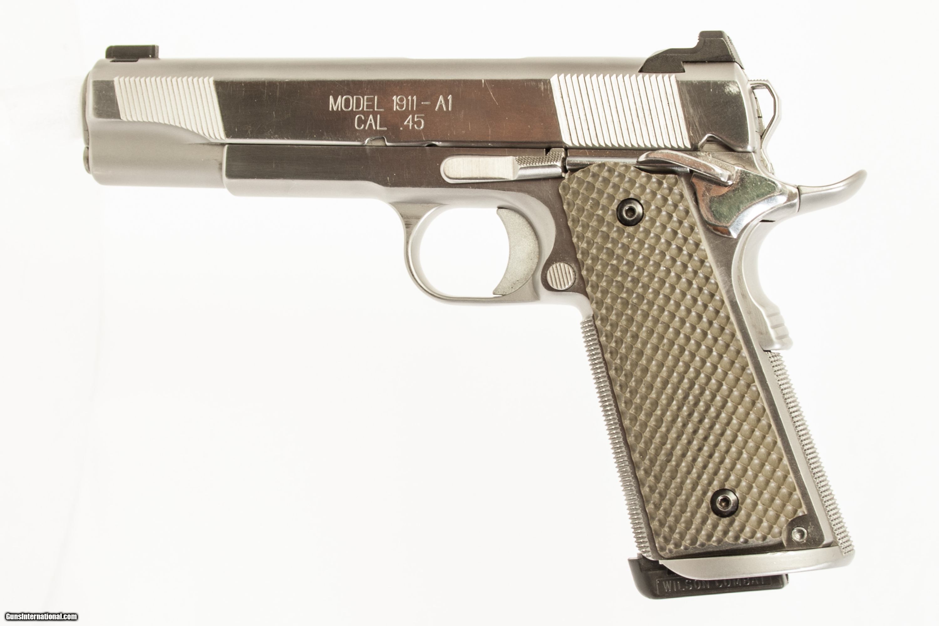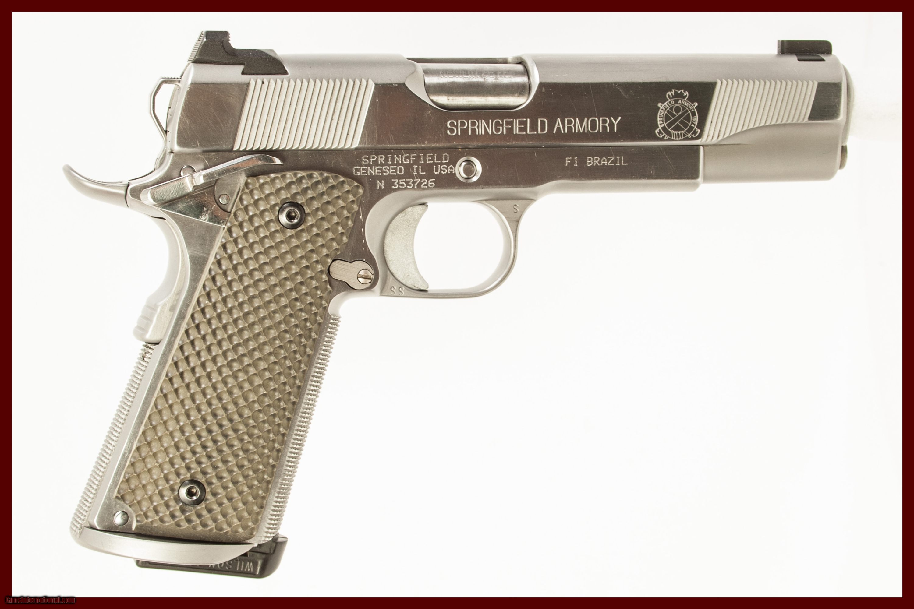 SPRINGFIELD ARMORY 1911 A-1 CHAMBERED IN 45ACP WITH A 5 INCH BARREL. THIS GUN IS IN GOOD CONDITION AND IS COVERED BY DURY'S LIFETIME WARRANTY.
