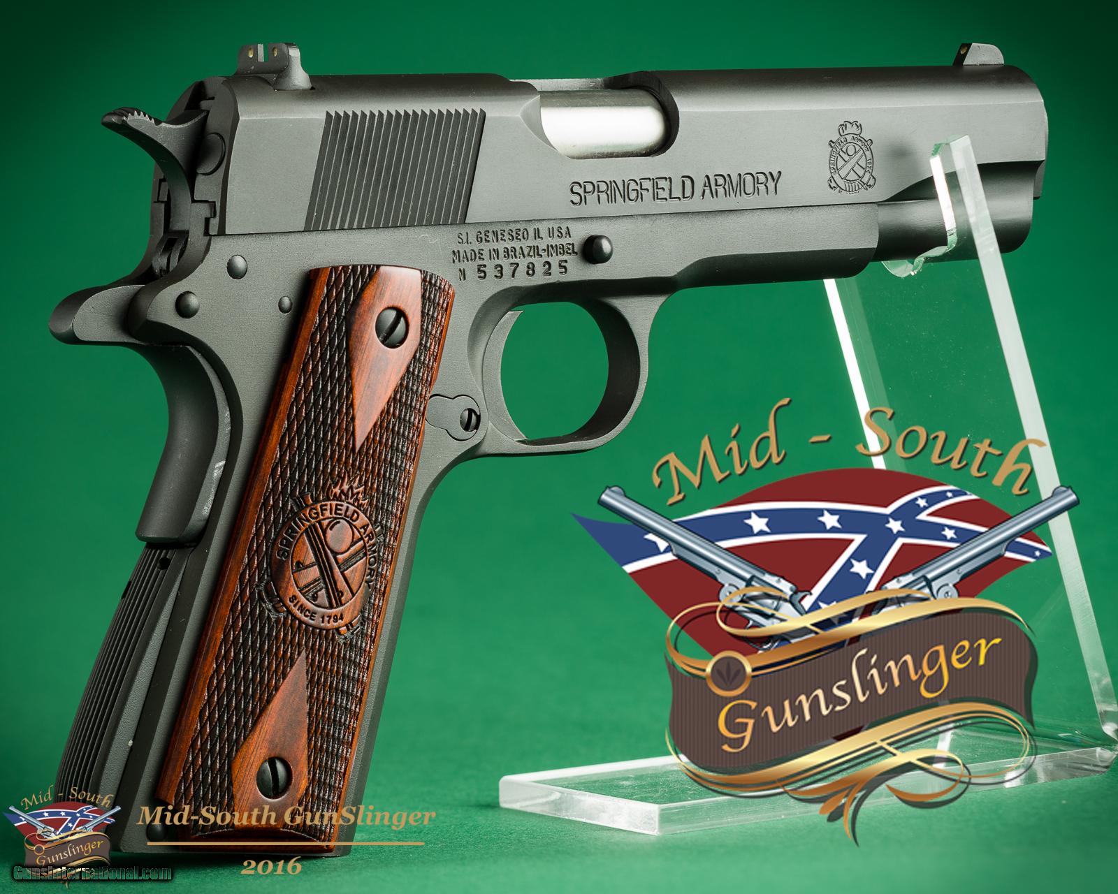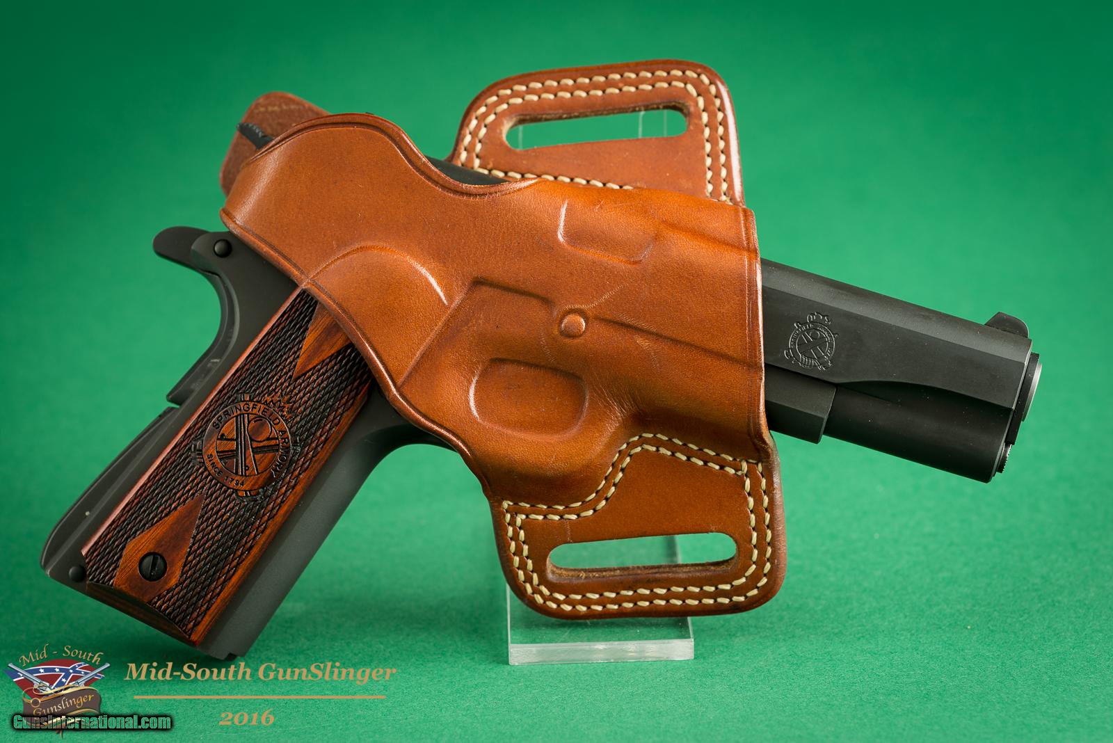 Description: Presented for sale, you will find a Springfield Armory 1911-A1 in the Mil Spec configuration. Included in the listing is the pictured Galco holster, OEM case, two magazines. Extra set of plastic grips, holster, magazine holster and cleaning brush. This pistol will ship via FedEx Express Standard Overnight to the lower 48 for $49.95. Thank you for looking. Our phones are answered 24/7 by a human that speaks English. Mid-South GunSlinger Will Sell Your Guns for You!!!