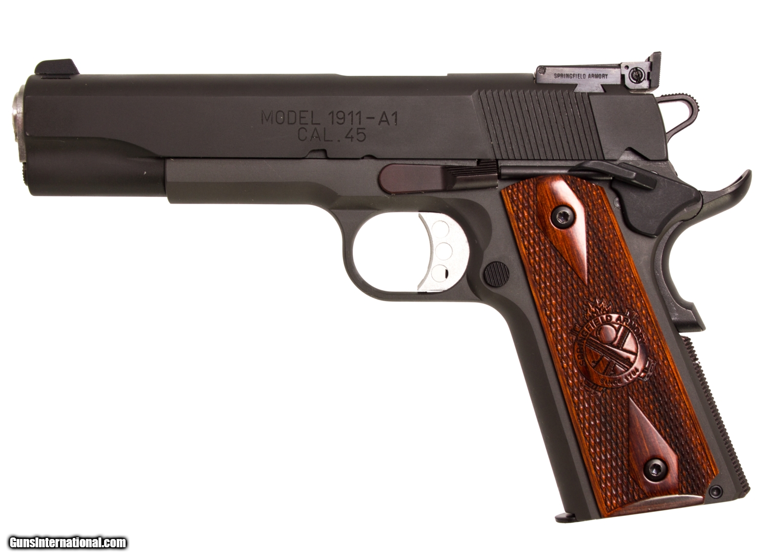 Springfield Armory 1911 A1 chambered in 45 acp with a 5 inch barrel adjustable rear sight and 2 extra magazines. This gun is in excellent condition and is covered by Dury's Lifetime Warranty.