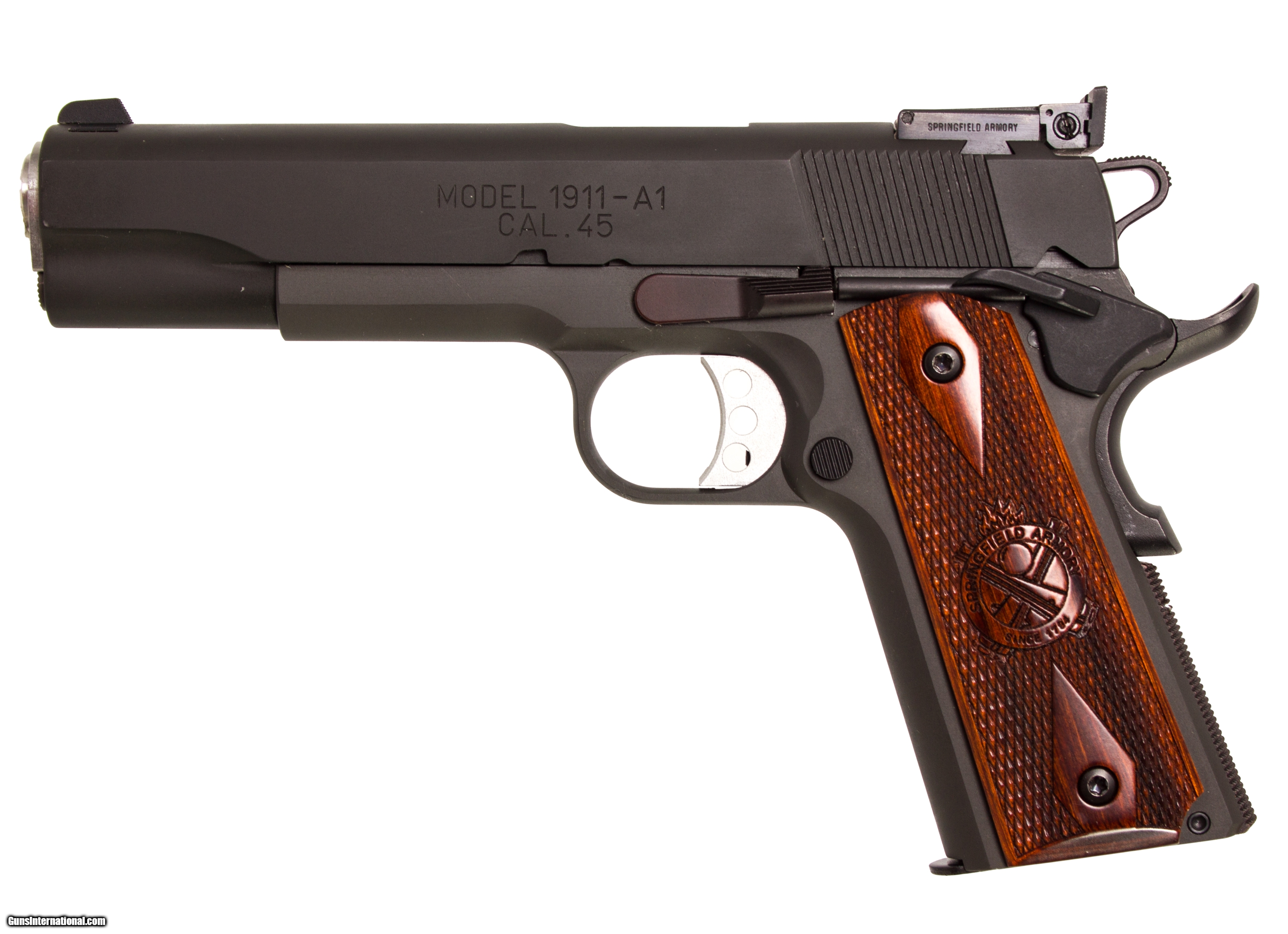 Springfield Armory 1911 A1 chambered in 45 acp with a 5 inch barrel adjustable rear sight and 2 extra magazines. This gun is in excellent condition and is covered by Dury's Lifetime Warranty.