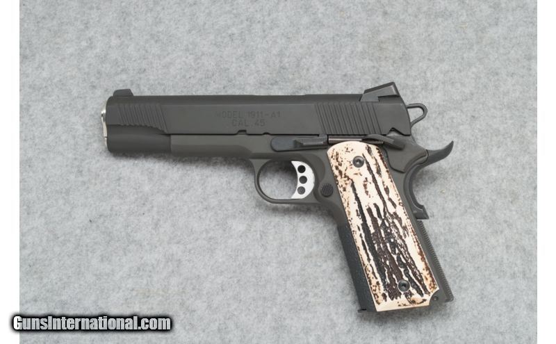 Description: Used. Extended safety and slide release; one piece guide rod added. SOLD Caliber Info: .45 ACP Metal Condition: Excellent Bore Condition: Clean and sharp Barrels: 5 Triggers: SA; with grip safety Stock: Simulated stag grips Weight: 40 oz. Sights: Combat style night sights Extras: Hard case with range package; checkered wood grips and all original parts included; (3) magazines. Item Location: Sun Prairie, WI |