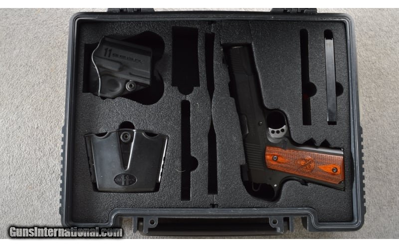 Description: Springfield 1911-A1 45 ACP with upgrades. This 1911 appears to have had a larger mag release installed with the high vis sights. It appears to have had the safety, trigger and barrel link polished. A well taken care of 1911 comes with case, kydex holster, mag carrier and a total of 2 magazines. .45 ACP SOLD Chambers: 7 Round Metal Condition: Clean with light handling marks Wood Condition: Factory wood grips with no scratches or marks. Very nice Bore Condition: Clean. High edges Barrels: 5 in Triggers: SA Sights: Adjustable High Visibility front and rear sights Item Location: Owatonna, MN |