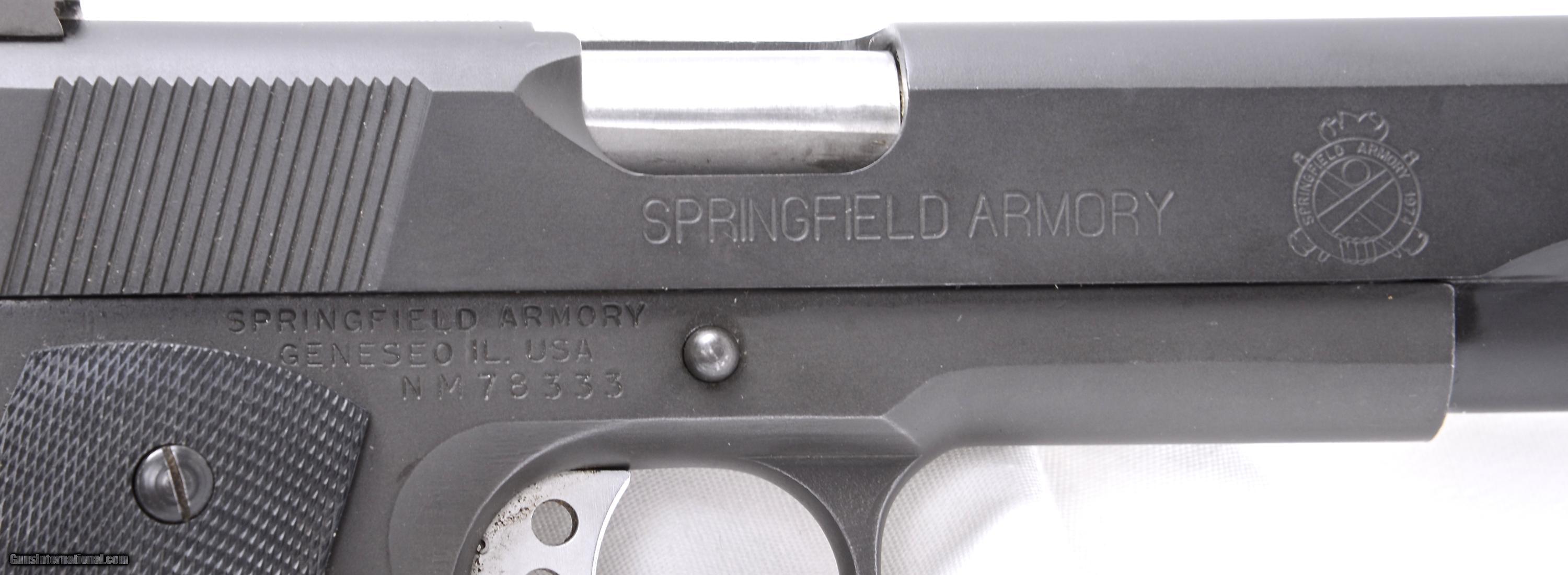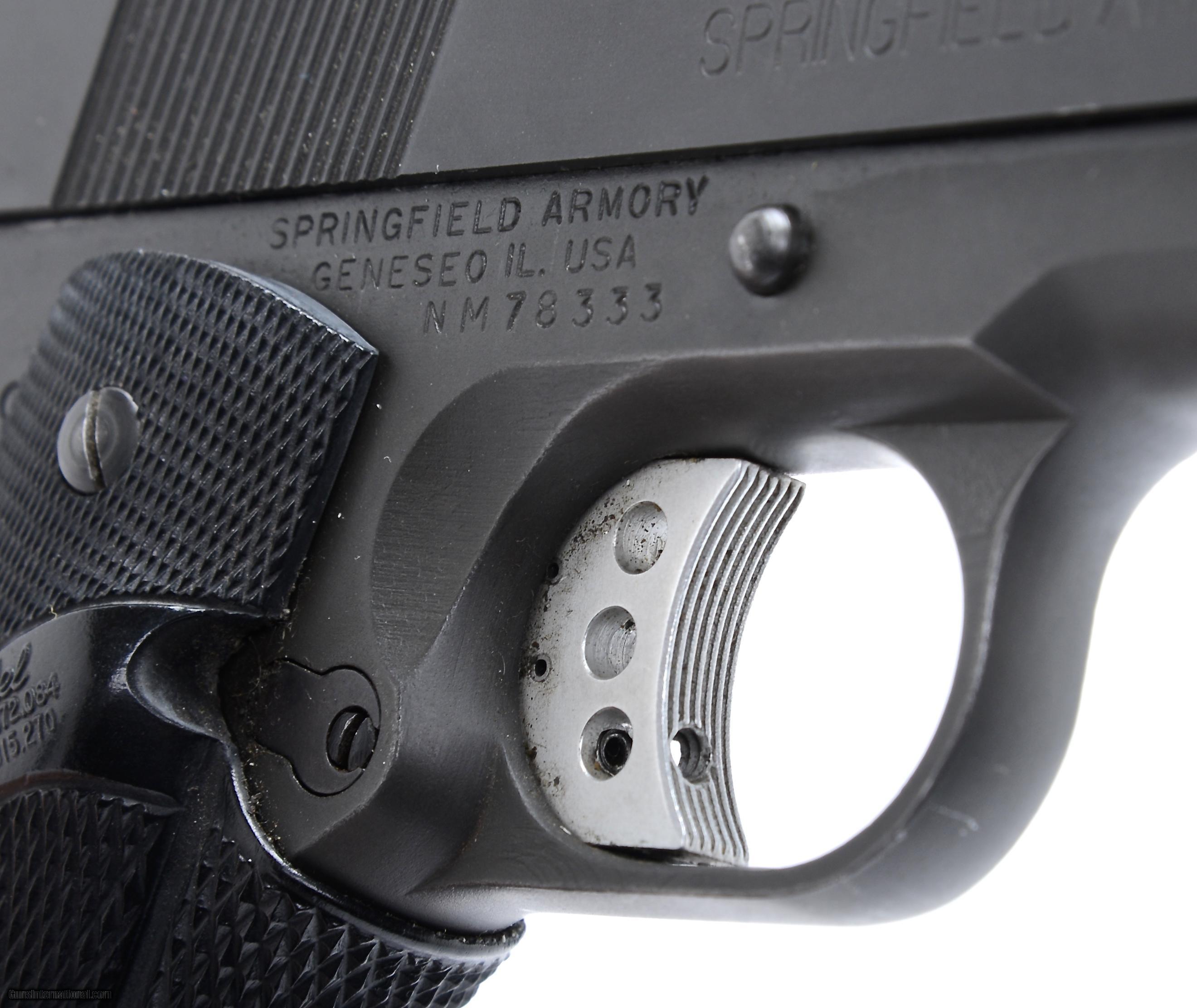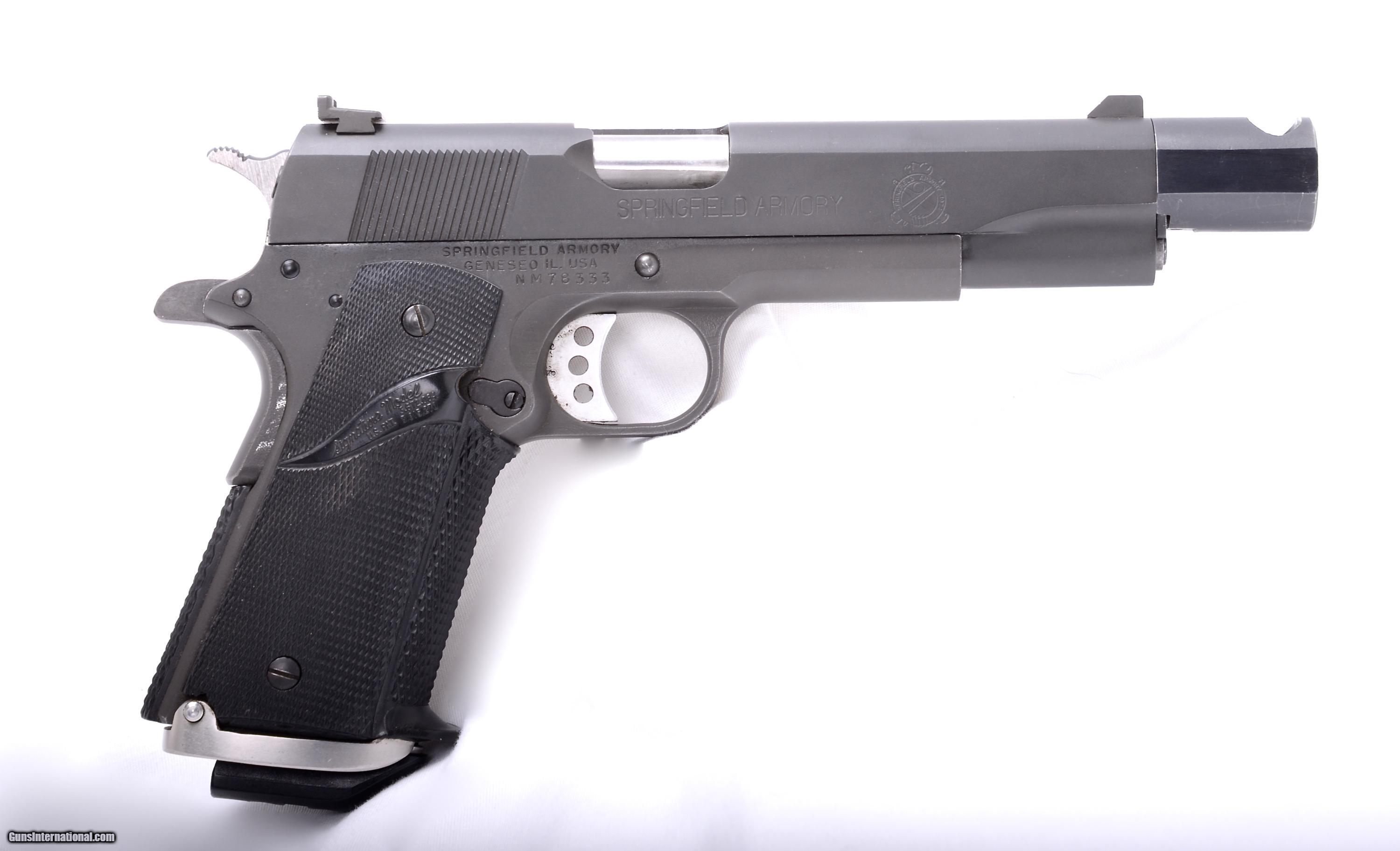 Description: SALE PENDING Springfield Armory 1911-A1 .45 ACP pistol. This pistol has an “NM” serial number prefix and these NM guns seem to always have a little tighter fit and more attention to detail. This particular NM gun was then accurized and fitted with a compensator, full length guide rod, target trigger, extended mag release, beveled mag well, Pachmayr grips, and Wilson Combat sights. The trigger pull is short, smooth and breaks at 3 lbs. 12 oz. The overall condition of this pistol is 98%+, combined with the very tight and smooth action makes it certain that it was fired very little after all of the work was completed. Comes with two magazines. SOLD |