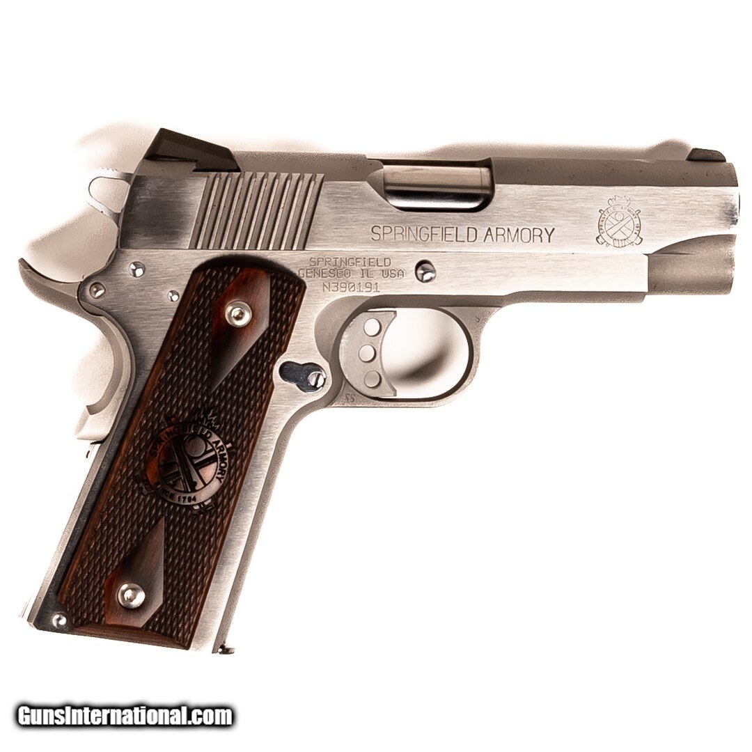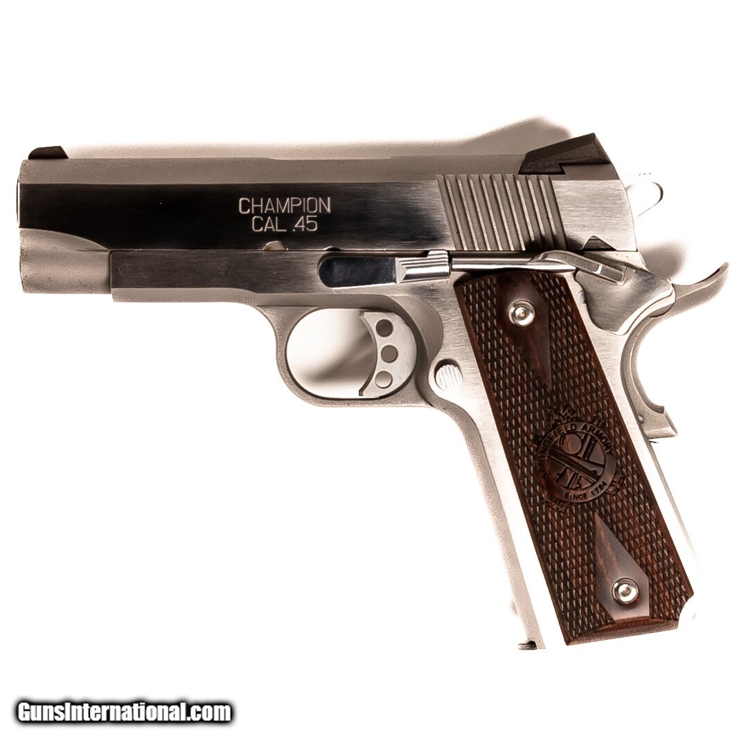 Description: Guns Listing ID: 747460 For sale is a Springfield Armory Champion. It‚‚s a compact version of the classic 1911 and makes for one smooth shooter. This Champion features a safety and includes the original case, owner‚‚s manual, and two 7-round magazines. Get the best bang for your buck when you get a Certified Used Firearm . When you see the Certified Used stamp on any of our firearms, you can be confident that you’re getting exactly what you want – a gun only in very good to excellent condition and held to the highest quality standard. All Certified Used Guns come with a ‘no questions asked’ return policy . PLUS, ALL CERTIFIED USED GUNS SHIP FRE SOLD Manufacturer: SPRINGFIELD ARMORY Model: 1911-A1 CHAMPION Caliber Info: .45 ACP Condition: Used - Certified Barrels: 3.9 BARREL Finish: STAINLESS |