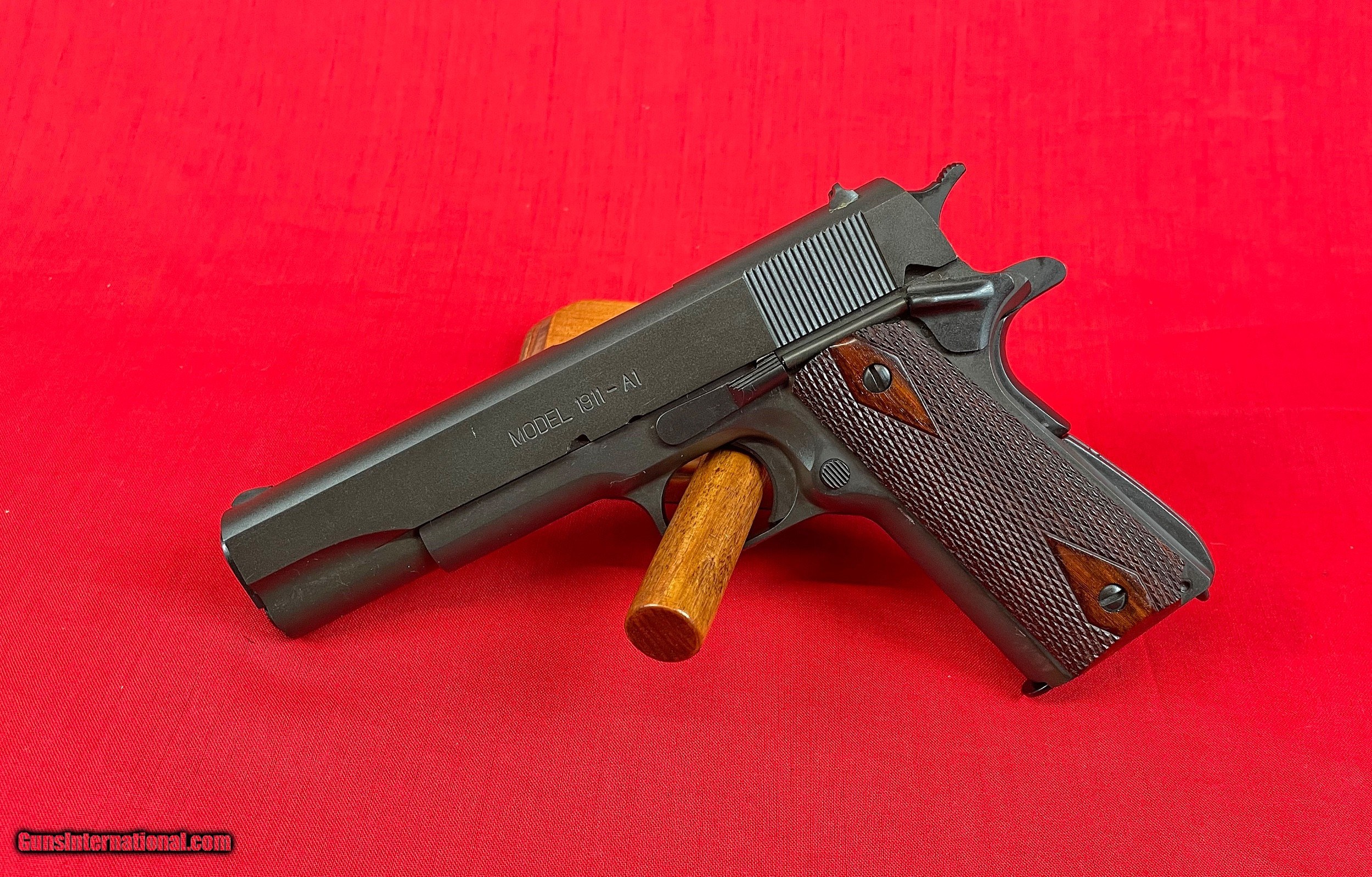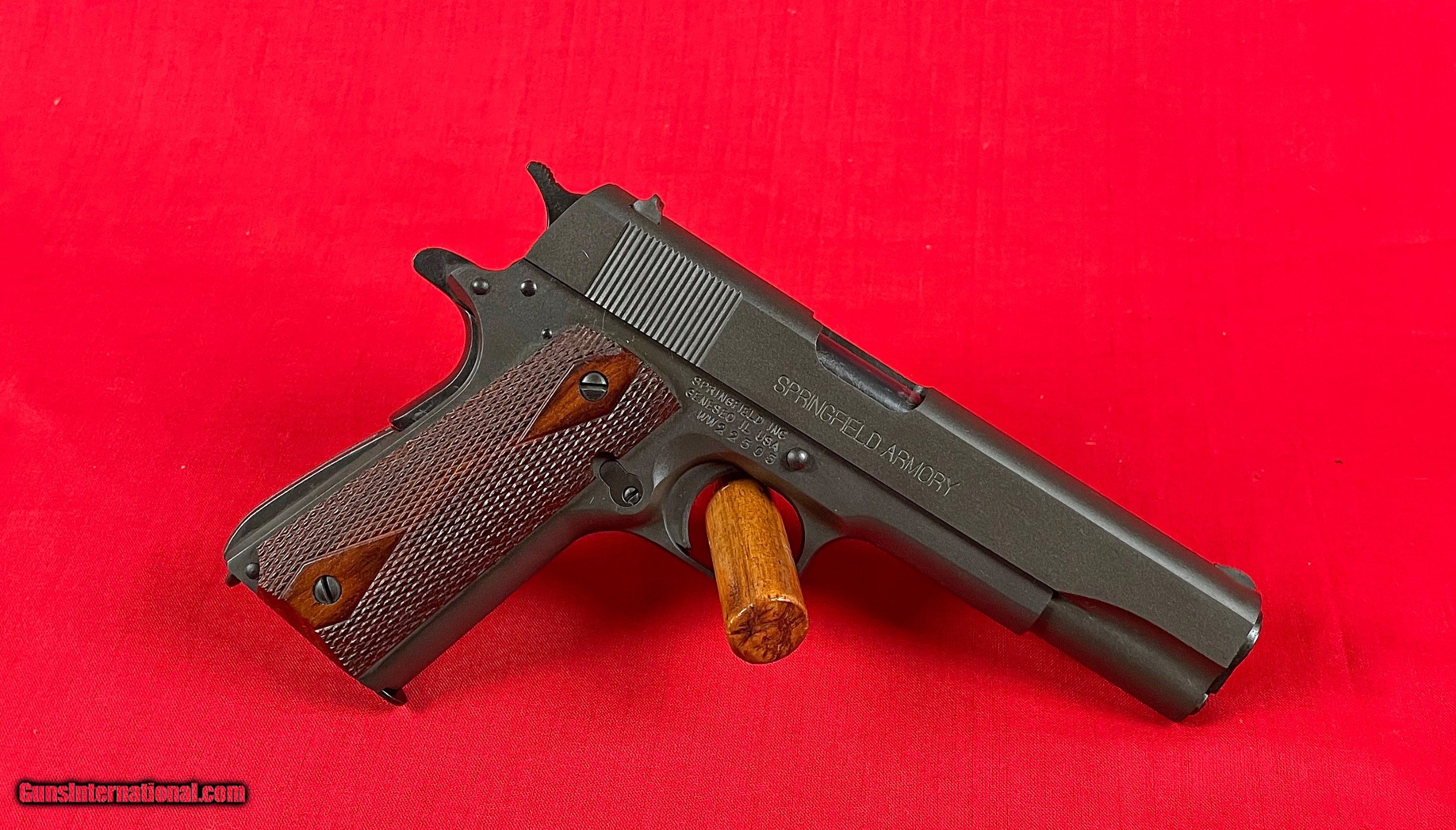 Description: Springfield Armory 1911-A1 Caliber 45ACP Excellent, like new condition Factory tight 5 inch barrel Parkerized finish Military style sights Double diamond grips with sharp checkering One standard magazine Cleaning rod with bore brush Factory manual Factory plastic case Ships to FFL only All firearms should be checked by a gunsmith Call or text Paul at 601-397-8054 Please see all my items SOLD Handgun Caliber: .45 ACP (.45 Auto) |