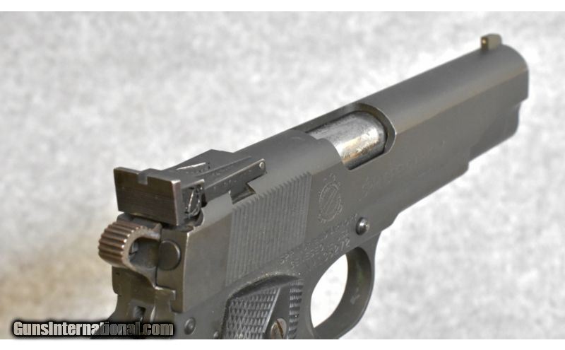 Description: SOLD Caliber Info: .45 ACP Metal Condition: good condition, wear on edges Bore Condition: bright and sharp Barrels: 5 inch Triggers: single Stock: Pachmayr GRIPPER grips Weight: 2.6 lbs Sights: fixed front blade, adjustable U notch rear Item Location: Kansas City, KS |
