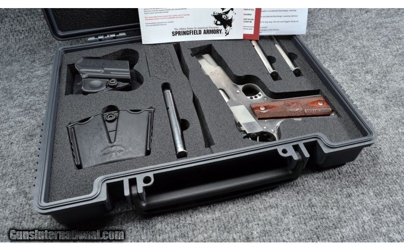 Description: From battlefields around the world to shooting-competition winner's circles, Springfield's family of Model 1911 pistols has been making itself known for decades. Renowned for durability, reliability and accuracy, these handguns consistently deliver top-notch performance in the field, at home and at the range. Springfield Armory's 1911 Range Officer includes upgrades like a fiber optic front sight, blacked out adjustable target rear sight, an extended beaver tail, and a skeletonized trigger and hammer. Made in USA. This Range Officer model in 9mm includes a factory hard case, holster, magazine holder, 3 magazines (total), and paperwork SOLD Caliber Info: 9mm Luger Chambers: Semi-auto single action Metal Condition: Very Good- marks on slide and frame Wood Condition: Excellent- little to no marks or wear Bore Condition: Excellent- clean, sharp rifling Barrels: 5 inch Triggers: 4 lb Butt Pad: Cross cannon double diamond Cocobolo grips Sights: Fiber optic front, target adjustable rear Extras: Factory hard case, holster, magazine holder, 3 magazines (total), paperwork Item Location: Gainesville, VA |