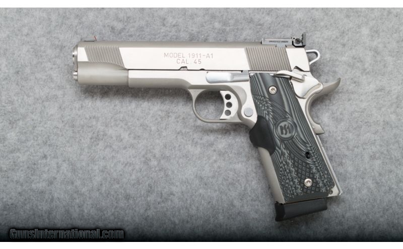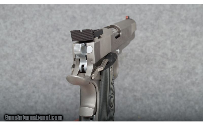 Description: SOLD Caliber Info: .45 ACP Metal Condition: Excellent; non-glare stainless Bore Condition: Clean and sharp Barrels: 5 inch Triggers: SA with grip safety Stock: Crimson Trace Laser Grips - Master Series Weight: 40 oz. Sights: Adjustable target rear; blade front Extras: Crimson Trace Laser Grips. No box. Item Location: Sun Prairie, WI |
