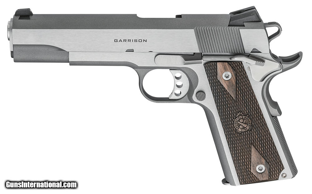 Description: Manufacturer: Springfield Armory Model: 1911 Garrison SKU: PX9419S Caliber: 9mm Luger Capacity: (1) 9 Round Magazine Barrel: 5" Forged Stainless Steel, Match Grade Frame: Forged Stainless Steel Slide: Forged Stainless Steel Overall Length: 8.6" Sights: Low Profile Combat 3-Dot Grips: Thinline Wood Weight: 38 oz All items are factory new in box unless otherwise stated. Based on the information available to us, the above specifications describe this item to the best of our knowledge. For further information, please contact or visit the manufacturer's . SOLD |
