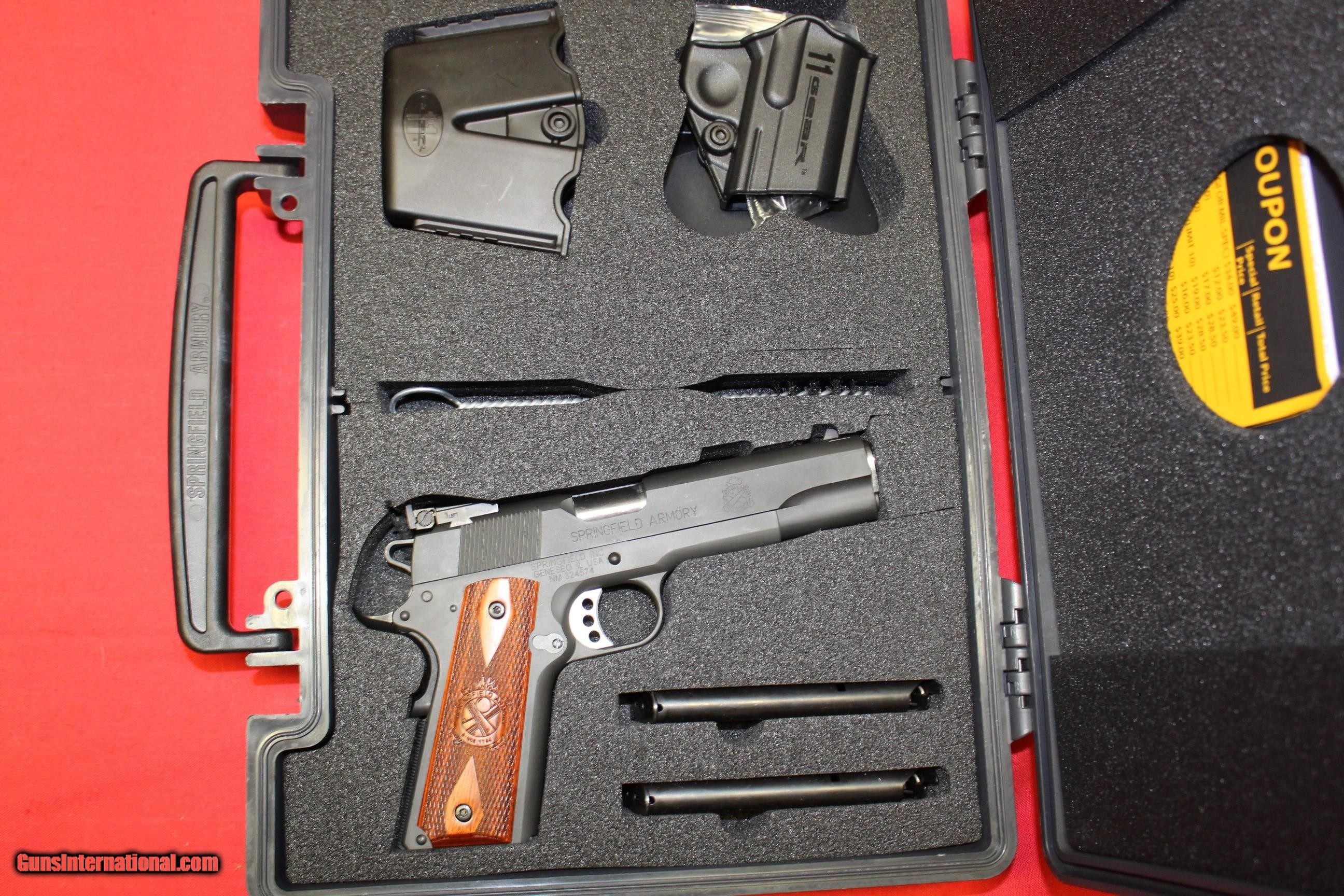Description: Springfield Armory 1911 A-1 RO CARB, 45 acp, Factory code P19128LP, checkered walnut grips, parkerized finish, gun has been fired but is like new, 99.9% condition, comes in factory hard case with 2 mags-mag loader-dual mag holster, gun holster-cleaning brush-keys & wrenches-papers, 100% satisfaction guarantee. S&H $25.00 SOLD Manufacturer: Springfield Armory Model: 1911 RO CARB Serial Number: NM324574 |