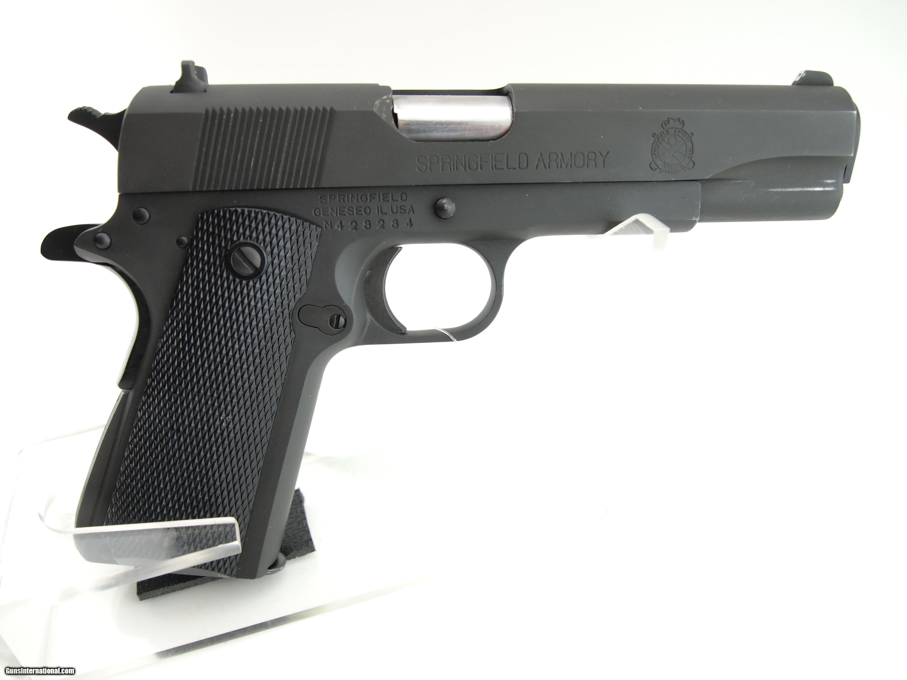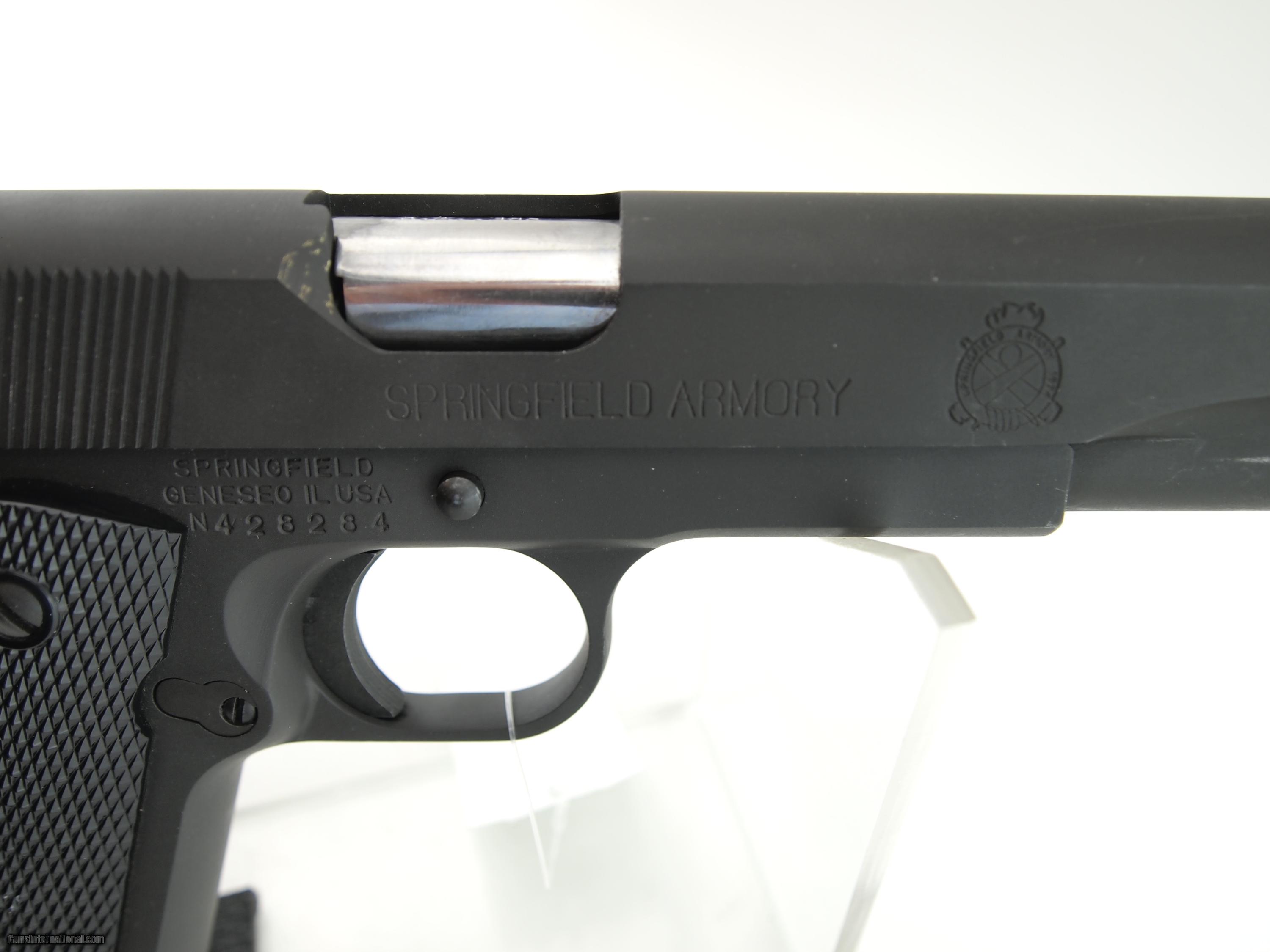 Description: Springfield Armory 1911A1, 38 Super, Series 70, 5" bbl, w/box, excellent condition, matt black finish, shiny clean bore with good rifling, and diamond checkered black grips. Add 3% for Credit Card payment Shipping $25.00 SOLD |