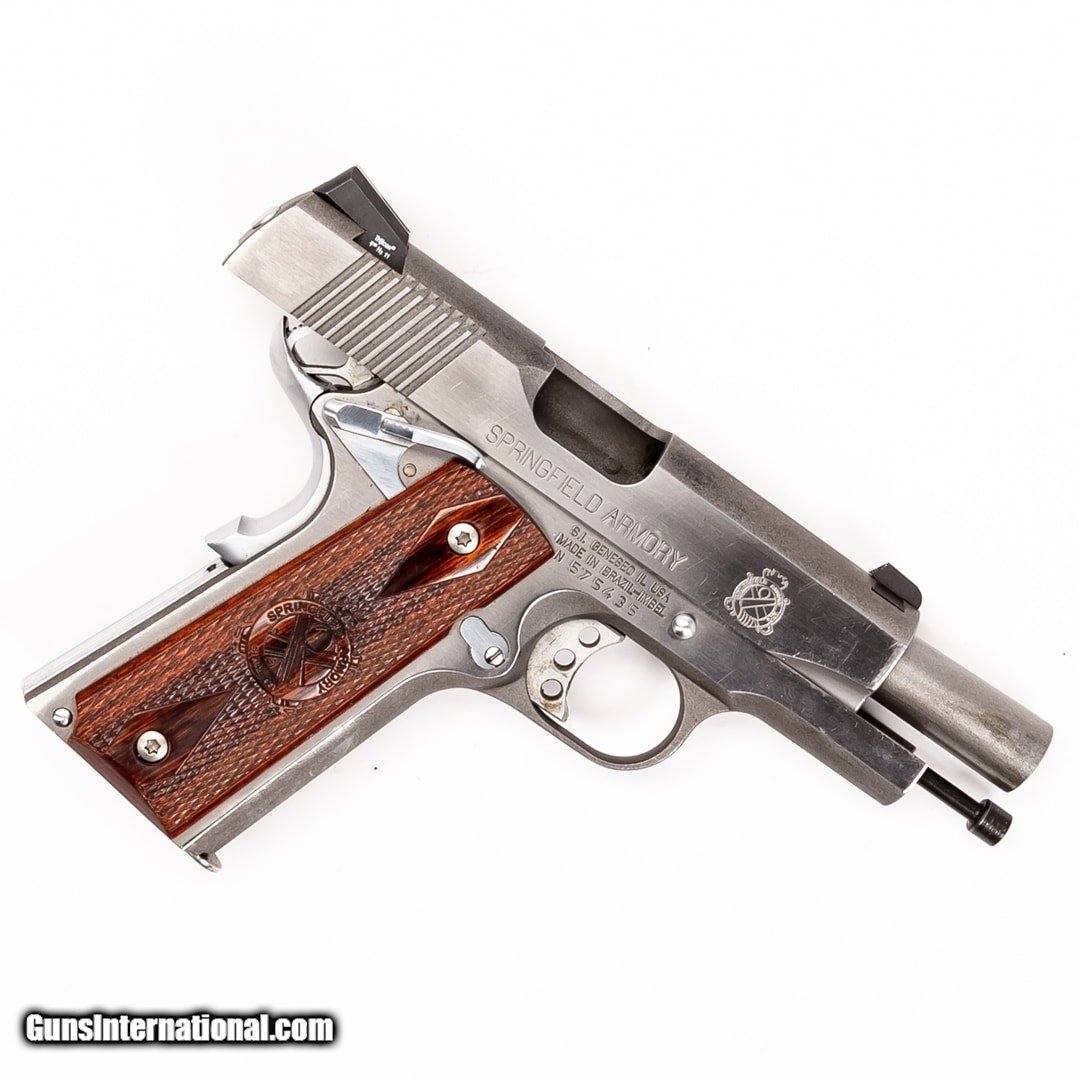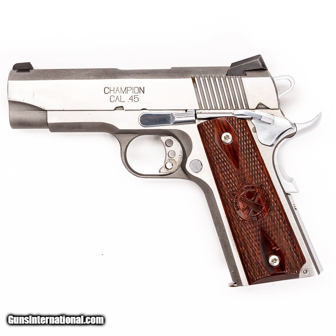 Description: Guns Listing ID: 343507 The Springfield Armory Champion is a stainless steel "officer's cut" 1911. With the natural ergonomics of the 1911 and a compact barrel, this handgun makes for a great option for conceal carry or self/home defense. Chambered in .45 ACP, this pistol comes ready to hit the target hard. This pistol features Trijicon night sights and comes with one 7-round magazine. The stainless steel finish has a few scratches. SOLD Manufacturer: SPRINGFIELD ARMORY Model: CHAMPION Caliber Info: .45 ACP Condition: Used - Certified Barrels: 3.75 BARREL Finish: STAINLESS |