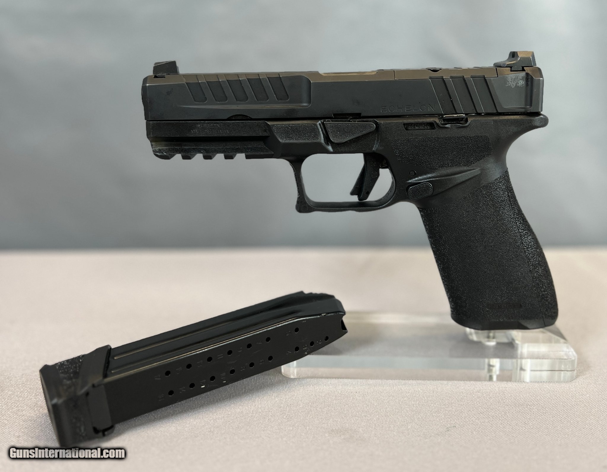 Description: Guns Listing ID: 465872 Springfield Armory Echelon 9mm Used, Pristine Condition - 95% Overall Barrel Length: 4.5 Inches Caliber: 9mm 1x 20rd Magazine Included Factory Optics Cut Ambidextrous Slide Stop & Magazine Release Crisp Trigger Pull & Break Factory Strippling Under Trigger Guard Fixed 3-Dot U-Notch Sights Accessory Rail Front & Rear Serrations S/N: BE283336 FID: 24100428 P SOLD Manufacturer: SPRINGFIELD ARMORY Model: ECHELON (3-DOT), 1 Mag Condition: Used - Non-Certified Barrels: 4.5 Gauge Info: 9MM LUGER (9x19 PARA) |