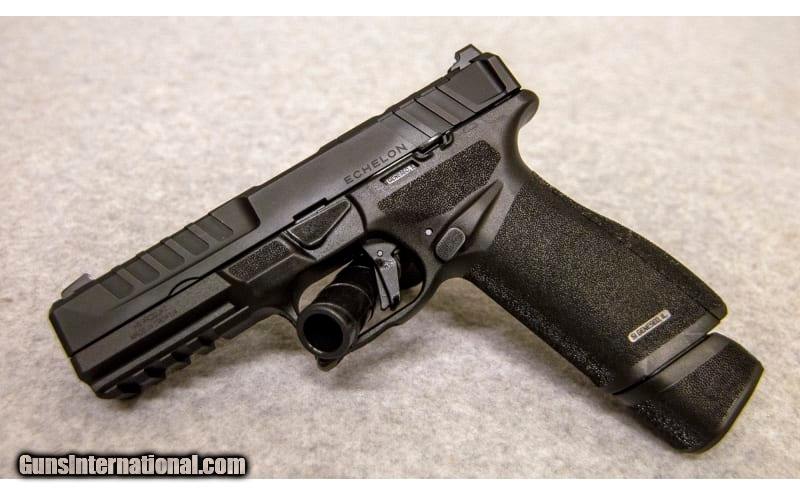 Description: Springfield Armory Echelon, chambered in 9 mm. Features include: striker fired, features COG (Central Operating Group), black polymer frame, 4.5 in. hammer forged steel barrel, 17 shot mag., 3-dot Tritium sights, VIS (Variable Interface System), Melonite finish on barrel and slide, 23.9 oz. 9mm Luger SOLD Chambers: 9 mm Metal Condition: Excellent Bore Condition: Excellent Barrels: 4.5' Sights: 3 Dot Night Item Location: Fort Mill, SC |