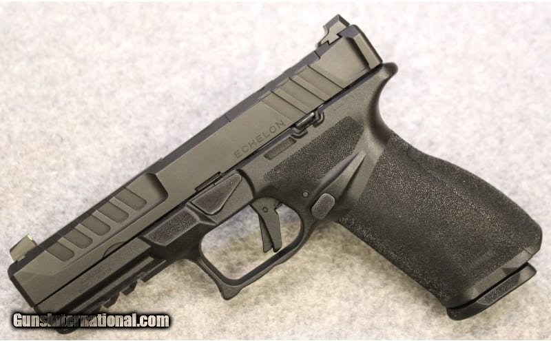 Description: This Springfield Armory Echelon chambered in 9MM features, black finish, polymer frame, ambidextrous slide release, night sights, two stage trigger safety, accessory rail, and optic ready. 9mm Luger SOLD Metal Condition: Great Bore Condition: Bright Barrels: 4.25 inches Weight: 1.6 lbs. Item Location: Hoffman Estates, IL |