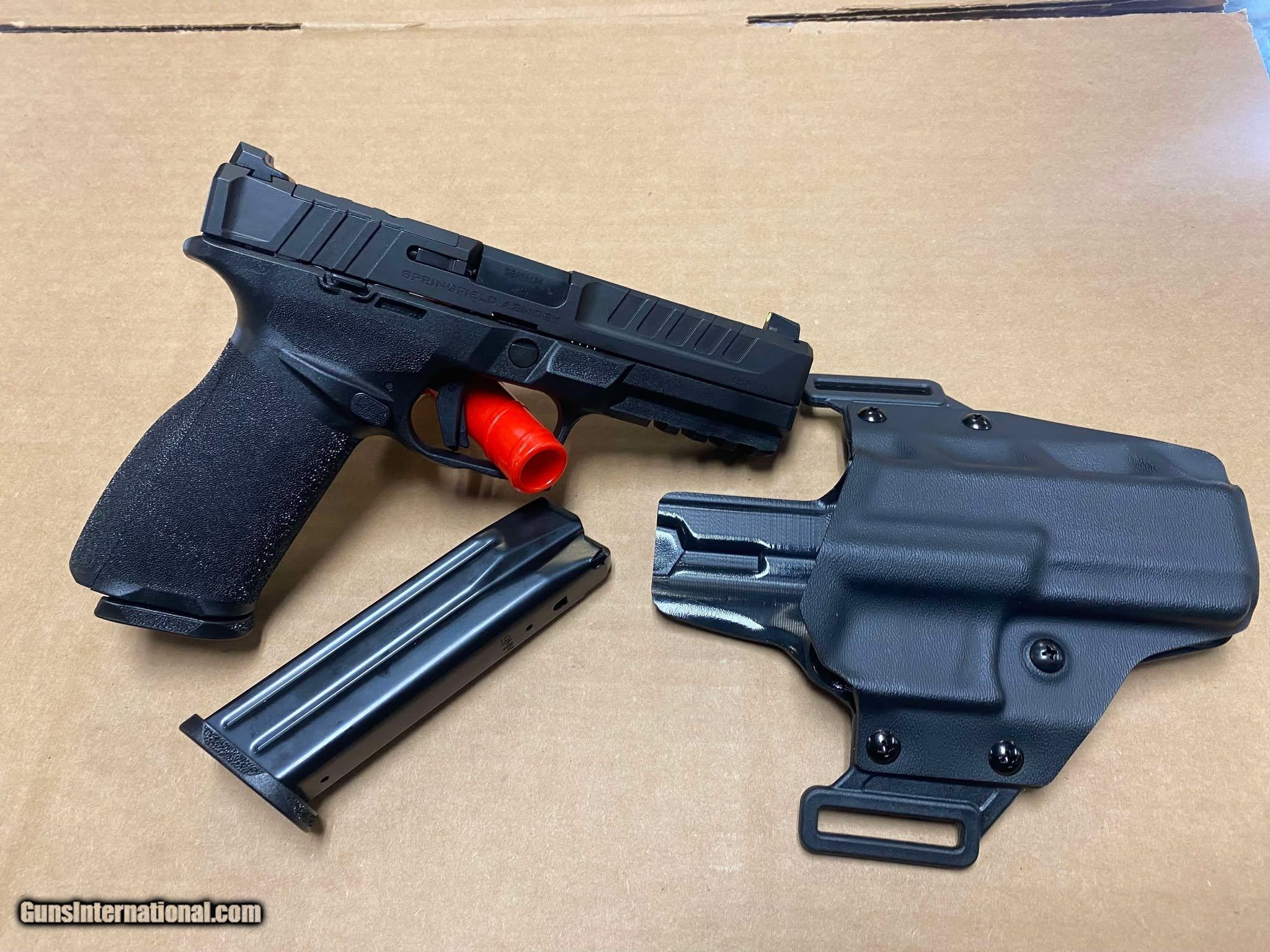 Description: Guns Listing ID: 475863 According to our rating scale I would Rate this gun \"Very Good\". I have taken multiple pictures to show the condition of it. We want you to get the best impression of it. With the hopes when you get it, that it is better than what you thought. 100% working order. some scuffs and scratches Includes holster Comes with gun and two mags. The bore I would rate 8.5 out of 10. If I had to rate the firearm in condition I would say 8.5 out of 10.(Please see my pictures for a better detailed idea), Please see all Photos for a very detailed Description of condition. We rate firearms using these condition standards, for modern firearms. NEW-A gun given a grade of \"new\" looks just as it did when it left the factory and has never been sold at a retail store. PERFECT-A “perfect” gun is literally as good as new, although it may have been sold in a retail store. EXCELLENT-An “excellent” rating means the gun appears to be in perfect condition but may have had minor use. VERY GOOD-A “very good” firearm is perfect mechanically but may have minor cosmetic blemishes. GOOD-A rating of “good” indicates that the gun is in proper working condition but may show signs of wear. FAIR-A “fair” firearm may or may not be in safe working order. It has not been test fired, only visually inspected. It may need repair or maintenance. UNRATED-Unrated condition means this firearm has not been test fired, it may function perfectly or it may be in need of repair. Cosmetically it may be in very good to fair condition. You will need to look at the pictures and ask questions SOLD Manufacturer: SPRINGFIELD ARMORY Model: ECHELON MOS 9MM FULL SIZE Condition: Used - Non-Certified Barrels: 4.5 Gauge Info: 9MM LUGER (9x19 PARA) Finish: black |