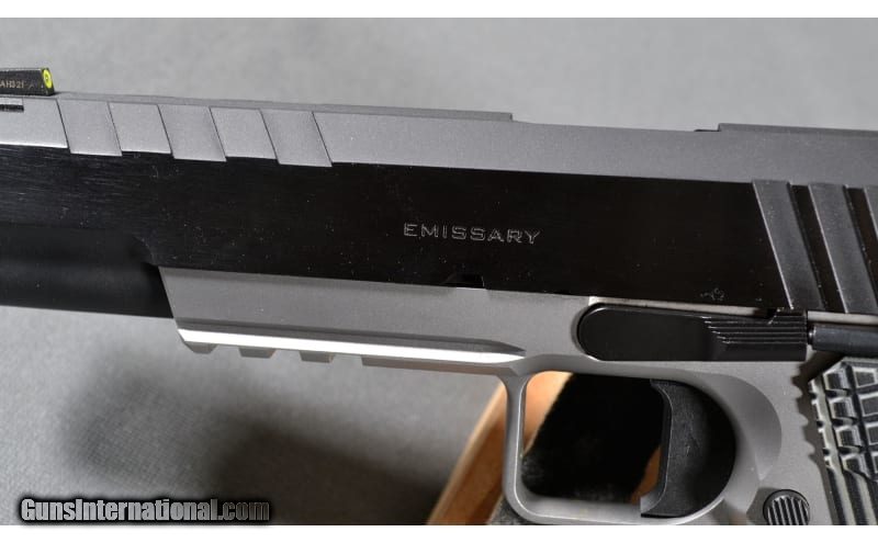 Description: Springfield Emissary chambered in 45 ACP. The Tri-Top cut to the slide and its serrations give the pistol custom-grade styling, while a heavy-profile bull barrel delivers maximum accuracy and reduced muzzle flip. With a forged slide and stainless steel frame the Emissary blends form and function seamlessly in a defensive-minded firearm loaded with custom-grade features. This Handgun comes with its soft case. .45 Auto SOLD Barrels: 5 Inches Item Location: Lacey, WA |