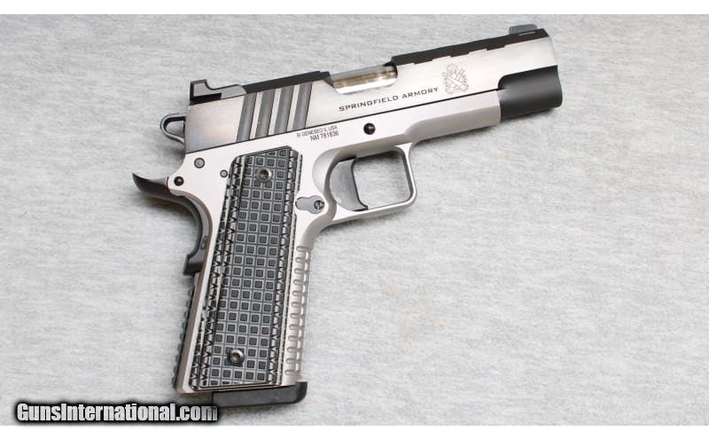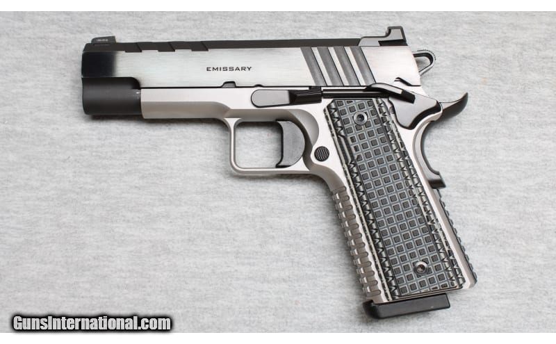 Description: Appears as new with two mags and box. .45 Caliber semi auto pistol with 4" bull barrel, two tone finish, night sights, single action trigger, lightweight hammer, extended safety lever and grip safety, unique "grenade" type texturing on front strap & mainspring housing and factory wood grip panels. A good choice for home defense or concealed carry. .45 Auto SOLD Chambers: Semi auto Metal Condition: As new Bore Condition: Bright Barrels: 4 Triggers: Single action Butt Pad: Factory grips Sights: "U Notch rear, big dot night sight front Item Location: La Vista, NE |