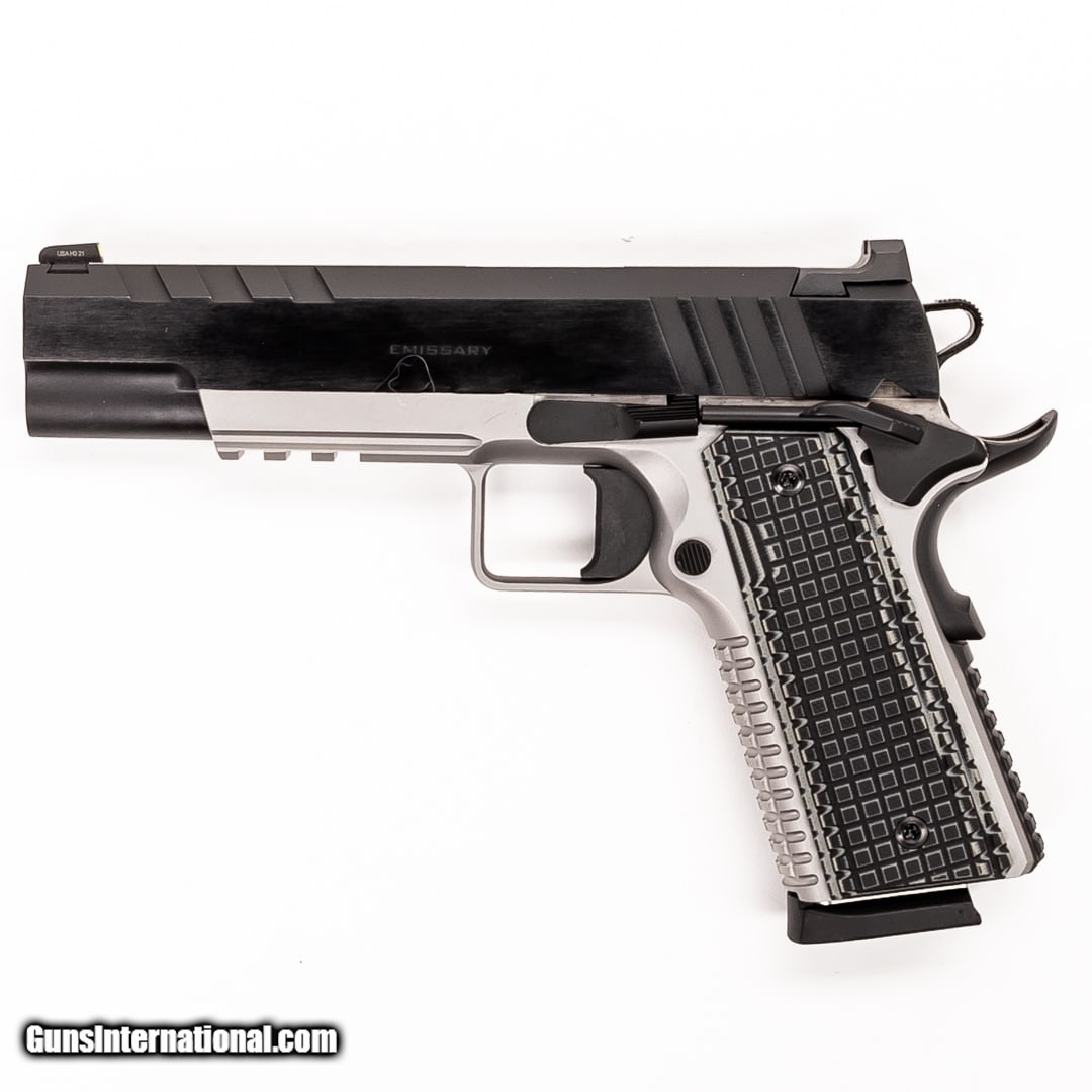 Description: Guns Listing ID: 399487 The Springfield Armory Emissary is an upgraded 1911 with a variety of tactical features. This is a fantastic self-defense option. 2-8 round magazines, the original box, soft case, and a manual are included. SOLD Manufacturer: SPRINGFIELD ARMORY Model: EMISSARY Caliber Info: .45 ACP Condition: Used - Certified Barrels: 5 BARREL Finish: TWO-TONE |