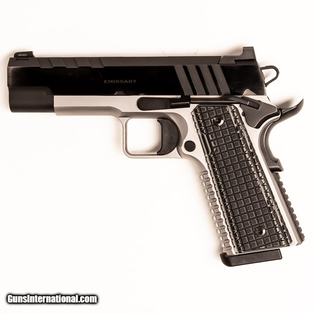 Description: Guns Listing ID: 569200 The 1911 is a classic handgun used for over a century in a wide variety of applications. This iteration of the 1911 model is set up to be a high-quality custom handgun with modern features like front serrations and custom grip patterns to aid in the shooter‚‚s purchase on the firearm. The 1911 Emissary from Springfield Armory is a quality handgun that will make for a great target shooter or self-defense option. This model has U-dot night sights and VZ Thin-Line G10 grips. Purchase includes the original box, soft case, manual, and two 8-round magazines SOLD Manufacturer: SPRINGFIELD ARMORY Model: EMISSARY Caliber Info: .45 ACP Condition: Used - Certified Barrels: 4.3 BARREL Finish: BLACK |