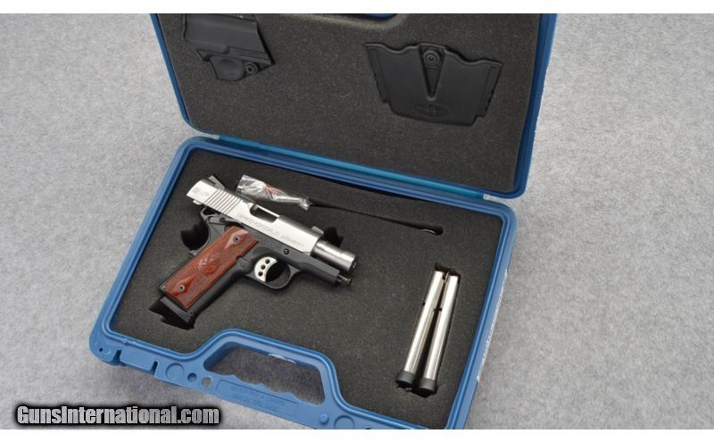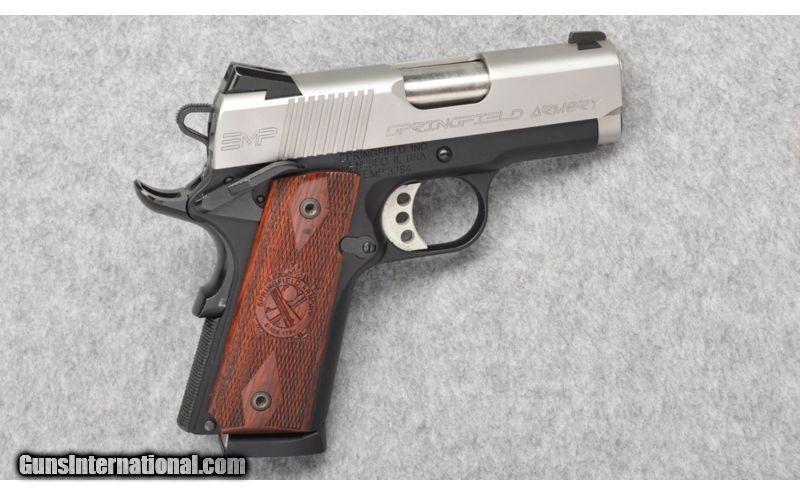 Description: Springfield Armory EMP in 9mm Luger. Black anodized allor frame with satin stainless slide. 9-round capacity. Includes factory box, holster and extra mags. SOLD Caliber Info: 9mm Luger Metal Condition: Couple light handling marks Bore Condition: Bright and Sharp Barrels: 3 inch match grade stainless steel Triggers: Alloy trigger Stock: Cocobolo double diamond grips Weight: 27 Ozs Sights: Low profile Tritium night sights Item Location: Buda, TX |