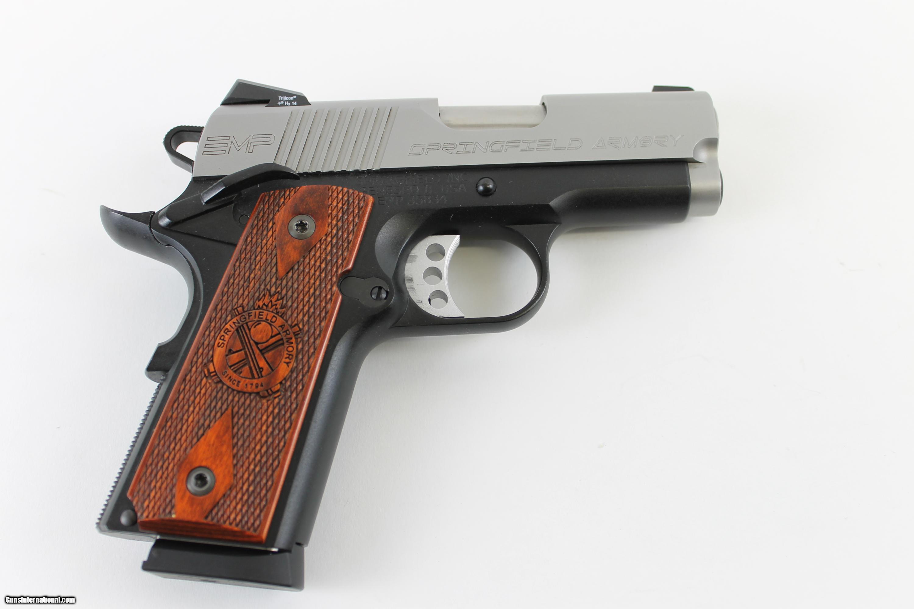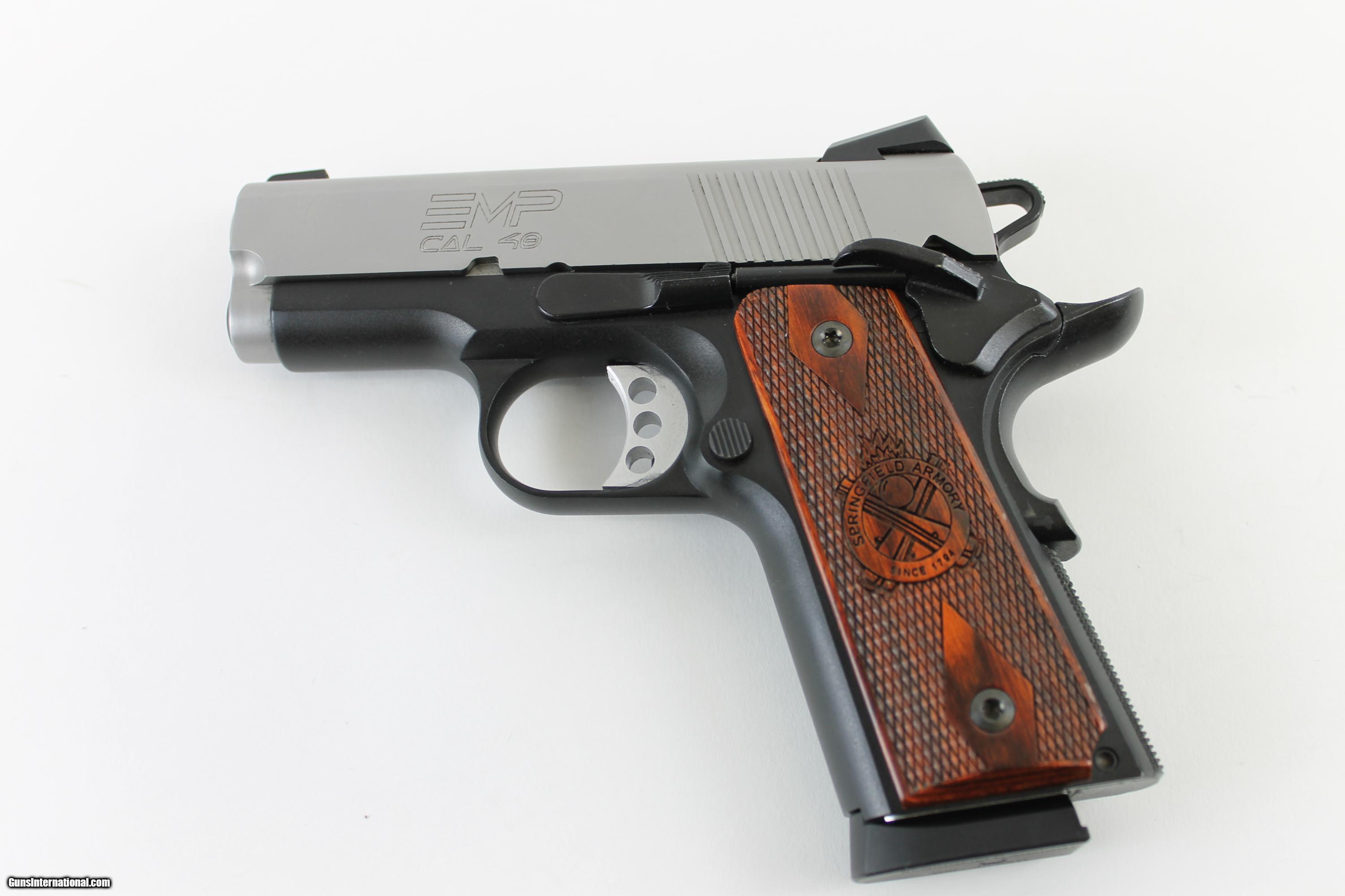Description: The action of the EMP is 1/8" shorter than standard 1911's. A shorter grip radius produces a shockingly comfortable shooting experience. Also increased reliability compacted into one the smallest 1911's on the market make this pistols a slam dunk to carry. SOLD Manufacturer: Springfield Armory Model: EMP Caliber Info: .40s&w Condition: Used Barrels: 3 Action: Single Action Finish: Bi-Tone Extras: 3 8rd Mags, Case, Holster |