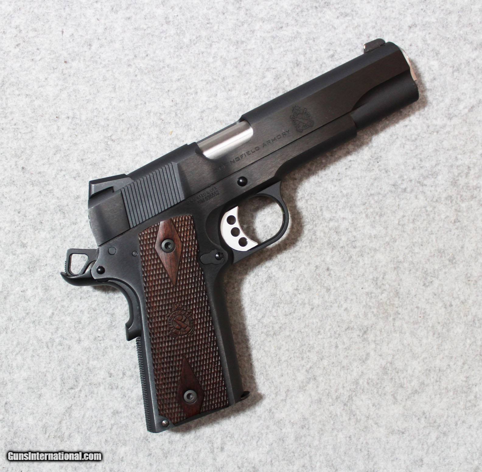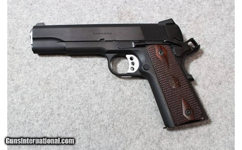 Description: Springfield Armory Garrison, single action semiautomatic pistol, chambered in .45 Auto. It has a 5" barrel with rear slide serrations. The front sight is a black blade with a white dot, and the rear sight is a fixed black u-notch with white dots. The hammer and trigger are skeletonized, and the controls are right-hand. The factory double diamond grip panels have the Springfield logo. Includes factory box and one magazine. Free shipping to any Bass Pro Shops or Cabela's store. .45 Auto SOLD Metal Condition: Very Good Wood Condition: Very Good Bore Condition: Bright And Clear Barrels: 5 inch Triggers: Single Action Weight: 38 oz Sights: Front: Black Blade with White Dot / Rear: Fixed Black U-Notch with White Dots Item Location: Allen, TX |