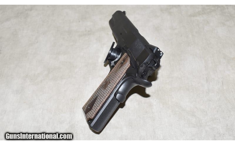 Description: This 1911 is in excellent condition. It has been fired, but not much. The single-stack magazines and 9MM chambering, along with the slim grips, make for a 1.3 inch thickness. It is nice, easy to carry option in a 1911. 9mm Luger SOLD Chambers: 9+1 capacity Metal Condition: Excellent. It shows some evidence of firing but could pass for new. Wood Condition: Excellent. Bore Condition: Shiny and bright with good rifling. Barrels: 5 inches Triggers: Factory trigger Stock Dimensions: """Thin-line"". Butt Pad: Checkered walnut with thin profile. Weight: 40 oz Sights: 3-dot sights. Item Location: Rogers |