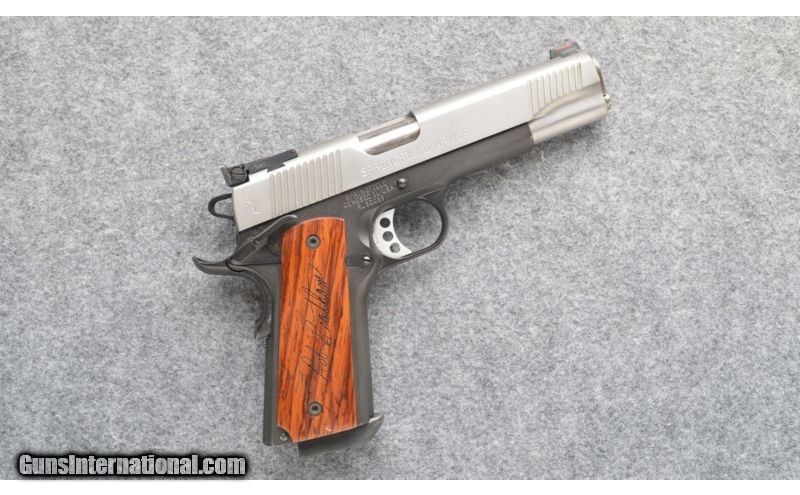 Description: Robert Leatham legend series 1911. SOLD Manufacturer: 2003. Caliber Info: .45 ACP. Metal Condition: Excellent. Wood Condition: Excellent. Bore Condition: Bright and sharp strong rifling. Barrels: 5". Stock: Wood grip panels with Robert Leatham signature. Weight: 32 oz. Sights: Fiber optic front. Adjustable rear. Extras: None. Item Location: Kansas City, KS |