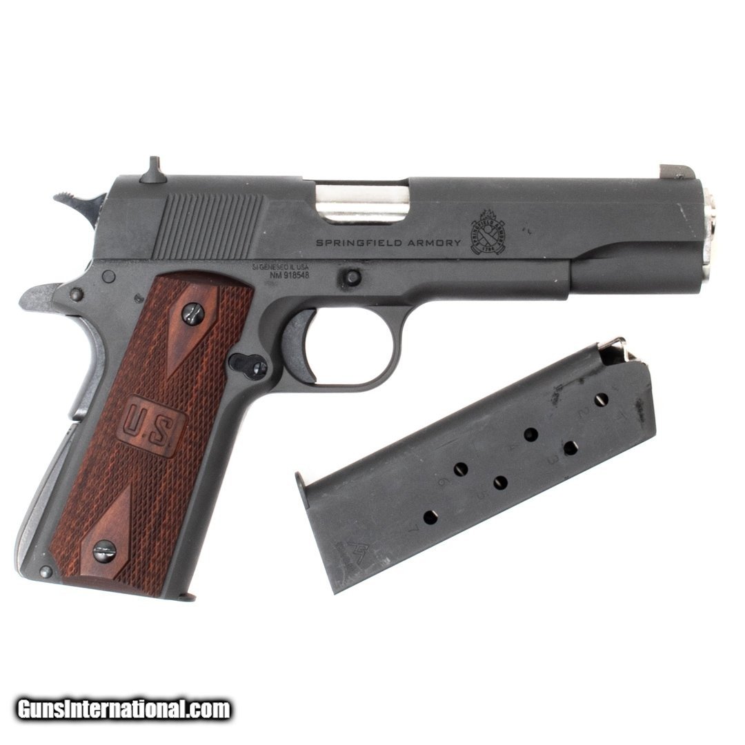 Description: Guns Listing ID: 588430 This Mil-Spec features wood \"U.S.\" grips and a safety. Purchase includes two 7-round magazines and the original guide rod, springs, and slide lock/release. Get the best bang for your buck when you get a Certified Used Firearm . When you see the Certified Used stamp on any of our firearms, you can be confident that you‚re getting exactly what you want – a gun only in very good to excellent condition and held to the highest quality standard. All Certified Used Guns come with a ‚no questions asked‚ return policy . Manufacturer: SPRINGFIELD ARMORY Model: MIL-SPEC Caliber Info: .45 ACP Condition: Used - Certified Barrels: 5.00" BARREL Action: SEMI AUTOMATIC Finish: black Weight: 2.4 Price: $522.49 Contact Seller |