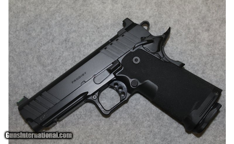 Description: The Prodigy from Springfield Armory® takes the proven 1911 platform and enhances it with double-stack capacity and a performance-driven feature set. Reconfigured around a double-stack magazine, the Prodigy's polymer grip module mounts to its forged steel frame. Optics ready with an ambidextrous safety and Picatinny rail the Prodigy combines the most beloved characteristics of the 1911 with modern capacity for unrivaled performance. 9mm Luger SOLD Barrels: 4.25 in Triggers: Adjustable Skeletonized Weight: 2.03 lb Sights: Green Fiber Optic Front/Serrated Black U Notch Rear Agency Optic Cover Plate Item Location: Farmington, UT |