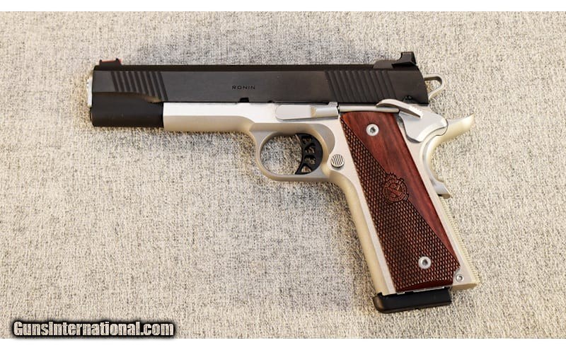 Description: This is a factory direct Springfield Armory Ronin in 10mm Auto 10mm Auto SOLD Metal Condition: Very good with a few small scratches and light wear marks on the barrel Wood Condition: Very good with a few small scratches Bore Condition: Clean with bright lands Barrels: 5 Triggers: SA Butt Pad: Thin checkered laminated rosewood Weight: 2 Lbs. 6 Oz. Sights: "Fiber optic front, drift adjustable 2-dot rear Item Location: Glendale, AZ |