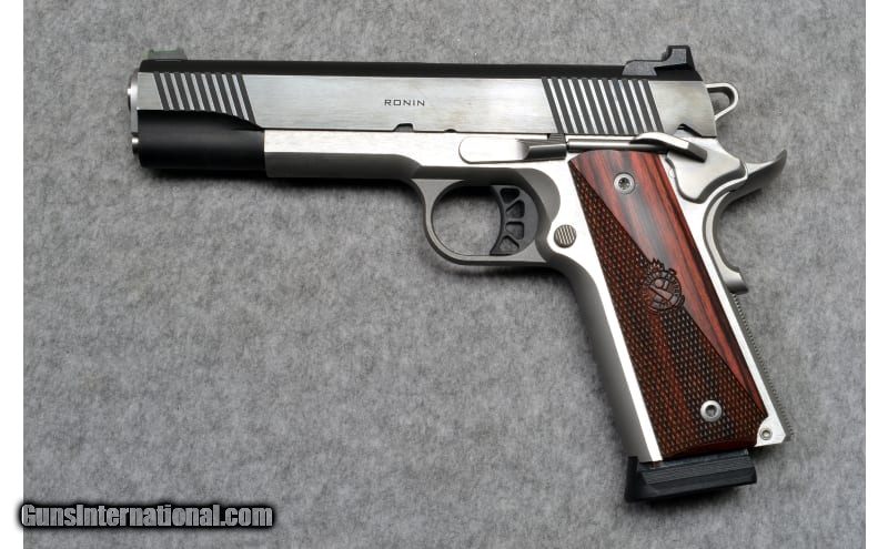 Description: The Springfield Armory Ronin features a right-hand-only thumb safety, an extended beavertail safety, front and rear serrations on slide and checkered wood grips with Springfield's crossed cannon logo. Firearm is in Very Good condition with a Bright and Shiny bore and has a light scratch on the Ronin name. .45 Auto SOLD Metal Condition: Very Good with light scratch on Ronin name Wood Condition: Checkered wood grips with Springfield logo Bore Condition: Bright and Shiny Barrels: 5 Triggers: Factory Weight: 2.55 lbs. Sights: Fiber optic front sight and White dot rear sight Item Location: League City, TX |