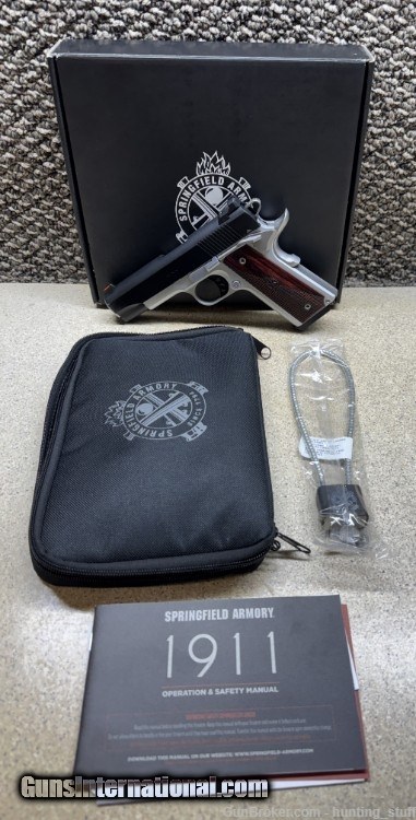 Description: Guns Listing ID: 473684 This listing is for a USED Springfield Armory 1911 Ronin 45 ACP Two-Tone Finish 4.25\" BBL 8+1. This is a used gun, it has been fired and will have residue present. This Springfield 1911 Ronin is chambered in 45 ACP, and it will hold 8 rounds in the magazine. This pistol comes with a 4.25 inch barrel. It comes equipped with a fixed front sight, a fixed rear sight. There are light scratches present around the slide and frame. The action appears to be in good condition, the finish appears to be in overall good condition, and the bore appears to be in good condition. This pistol comes with one 8 round magazine, a cable lock, an owner’s manual, a Springfield soft case, and the cardboard box. This would be a great plinking pistol. ** DISCLAIMER** THIS FIREARM HAS NOT BEEN TEST FIRED*** SOLD Manufacturer: SPRINGFIELD ARMORY Model: RONIN OPERATOR Caliber Info: .45 ACP Condition: Used - Non-Certified Barrels: 4.25 BARREL Action: STRIKER Finish: SATIN ALUMINUM CERAKOTE Weight: 1.84 LBS. |