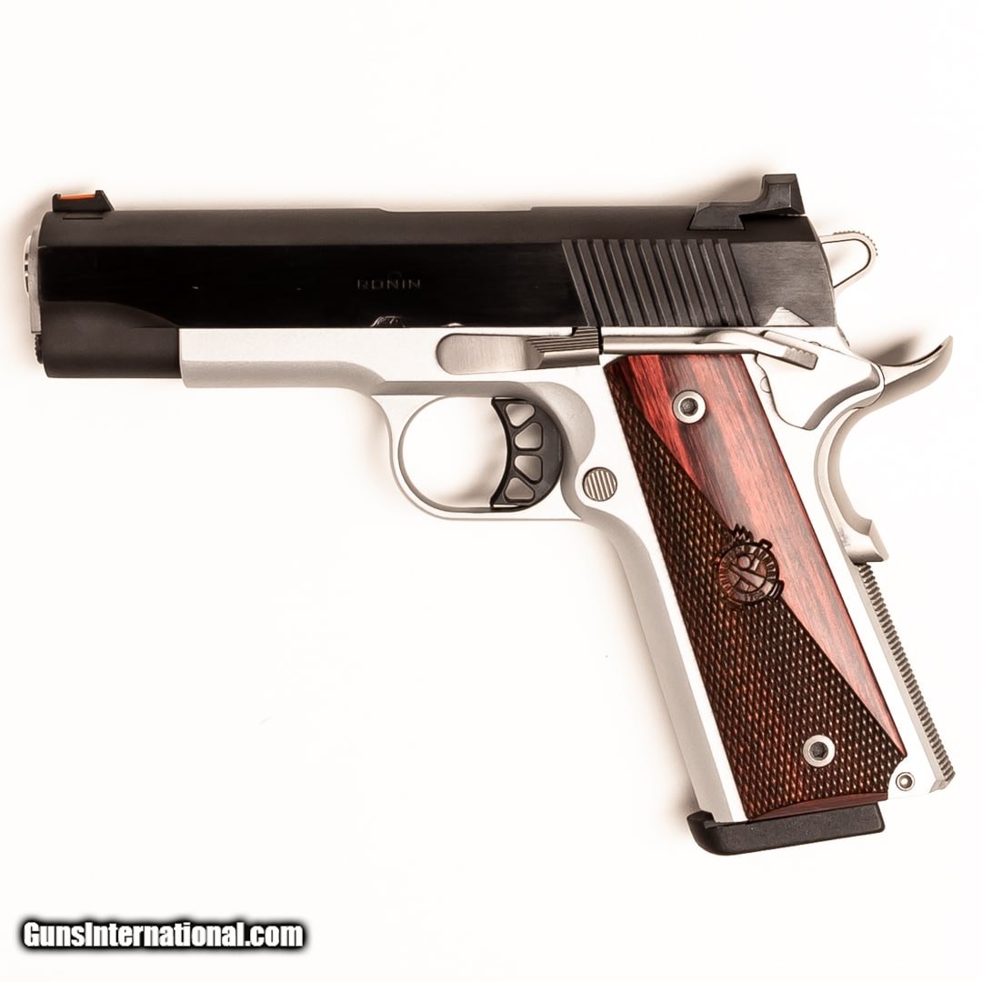 Description: Guns Listing ID: 563007 The Springfield Armory Ronin is a fine example of how the 1911 has morphed into an even better platform over the years. This Ronin is the ideal sidearm for tactical applications but will still make a fantastic target shooter and range toy as well. Some things never go out of style, and that‚‚s always the case with a well-built 1911. This Ronin includes the original nylon case, owner‚‚s manual, one 9-round magazine, and one 10-round magazine. SOLD Manufacturer: SPRINGFIELD ARMORY Model: RONIN Caliber Info: 9MM LUGER (9X19 PARA) Condition: Used - Certified Barrels: 4.2 BARREL Finish: TOW-TONE STAINLESS |