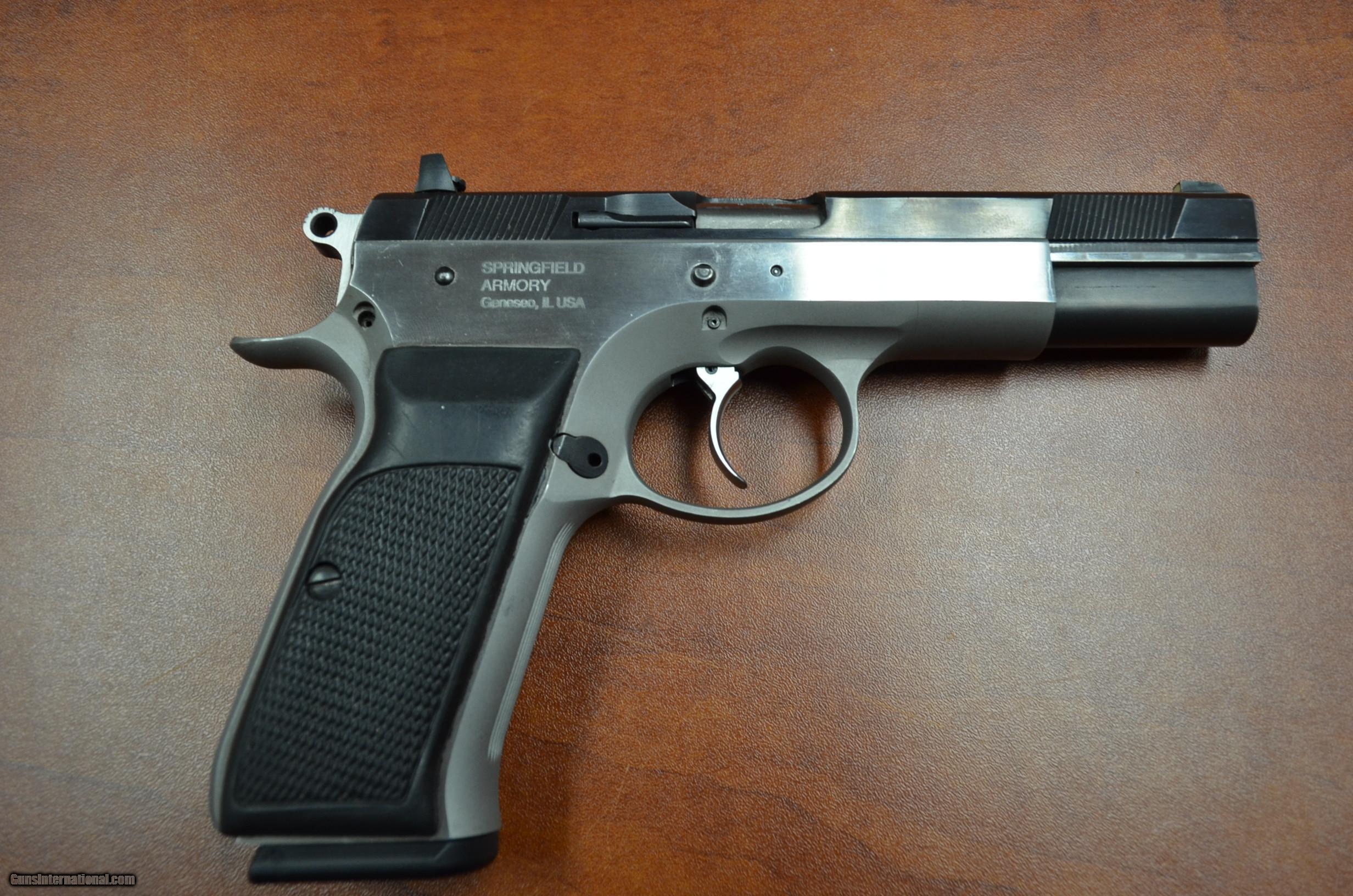 Description: Springfield Armory Ultra Model 9mm 4.75” barrel- this pistol is a Springfield Armory Ultra Model chambered in 9mm and designed for I.P.S.C. use. Pistol has a stainless frame and blued slide. Pistol is double/single action and has a ported barrel. Pistol has an adjustable rear sight. Pistol is a CZ design copy and CZ mags work in the pistol. Pistol has a bright bore and good grooves. Please call and ask for Tom in sales at 610.258.5500 Tuesday through Friday 10am-5pm. All guns subject to sale in our retail location. SOLD Manufacturer: Springfield Armory Model: Ultra Caliber Info: 9mm Bore: bright |