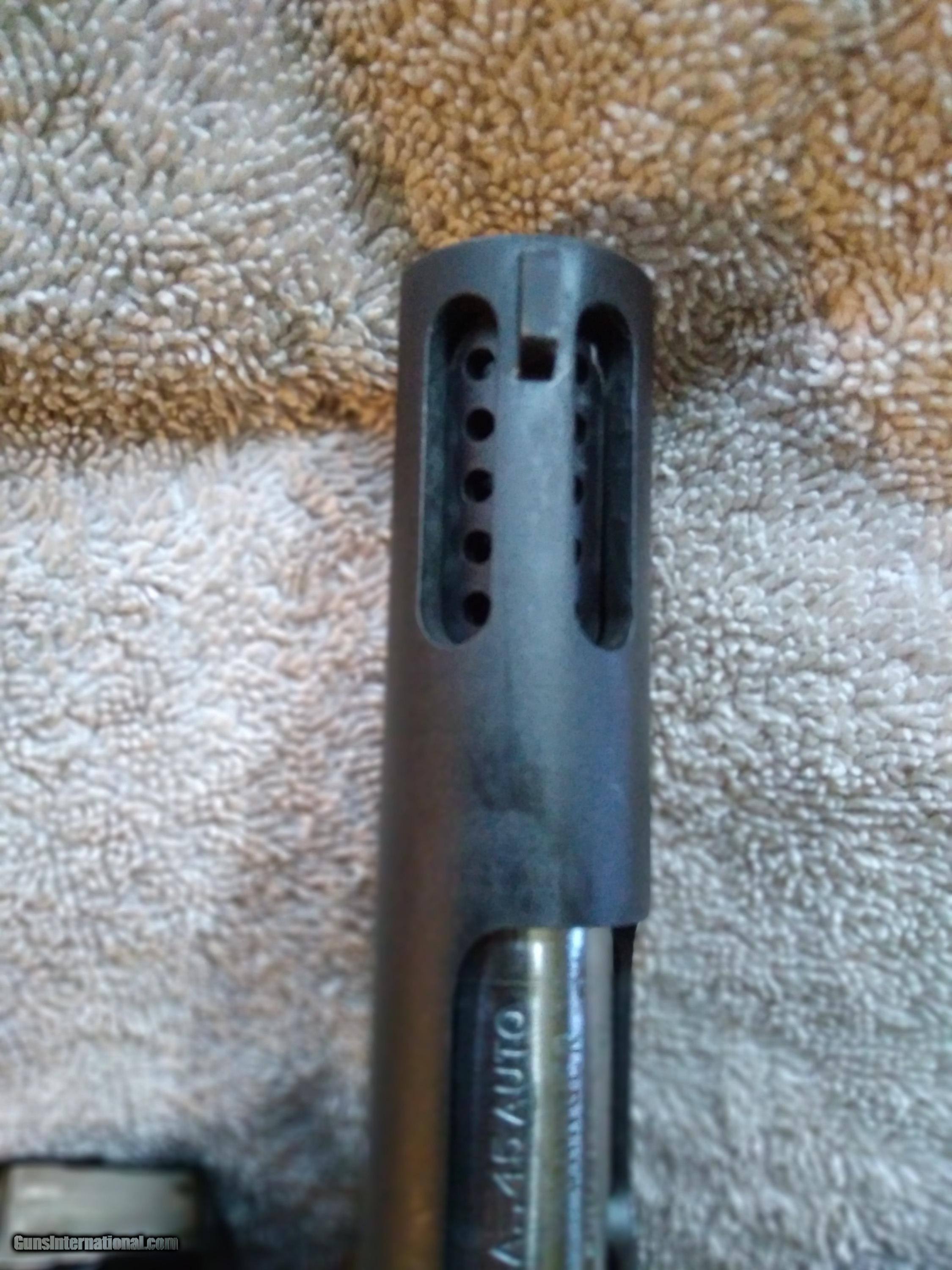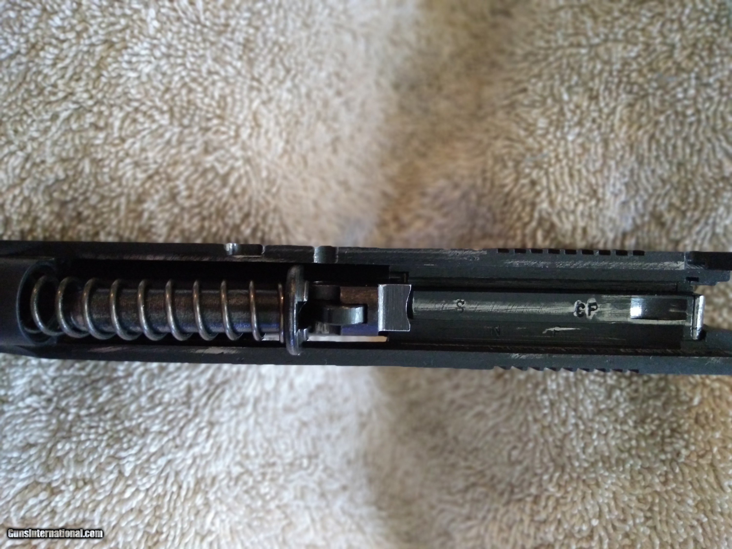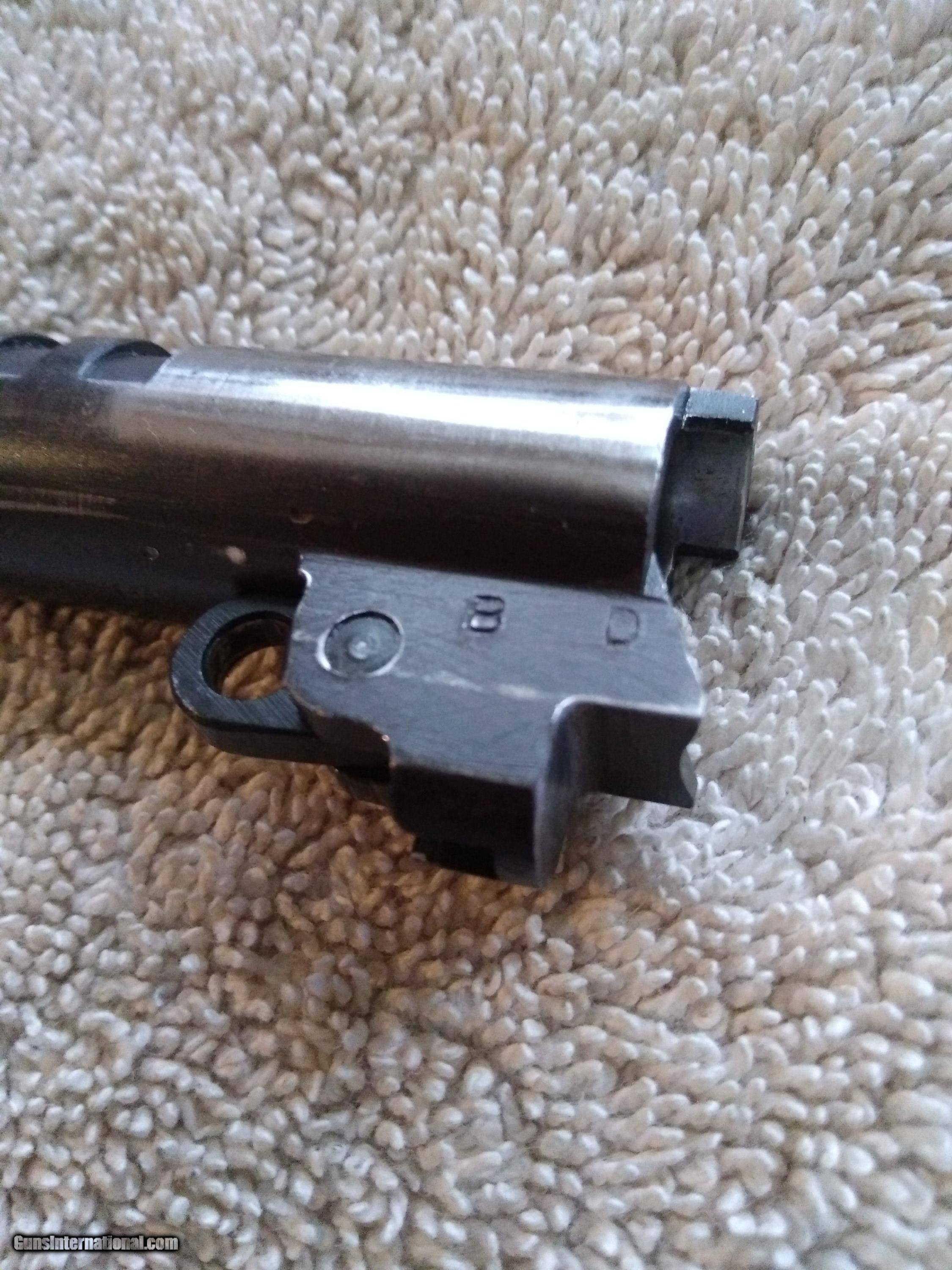 Description: SPRINGFIELD ARMORY PORTED V-10 S/N N411179 STAINLESS STEEL FRAME AND SLIDE SLIDE IS ULTRA COMPACT PORTED V10 WITH POST FRONT SIGHT AND A NOVAK U NOTCH WINDAGE ADJUSTABLE REAR SIGHT BEAVERTAIL GRIP SAFETY THUMB SAFETY SKELETONIZED HAMMER AND THREE HOLE TRIGGER SLIDE, SLIDE STOP, THUMB SAFETY, REAR SIGHT AND HAMMER ARE HIGH GLOSS BLACK FINISH TOP OF SLIDE AND BEVERTAIL GRIP SAFETY ARE BLACK SATIN FINISH BOTTOM OF FRAME, TRIGGER GUARD AND FRONT GRIP STRAP ARE GREY SATIN FINISH GRIPS ARE BLACK RUBBER DIAMOND SLIDE FINISH EXCELLENT WITH MINOR EDGE WEAR LEFT AND RIGHT FRONT ONE SMALL LITE SCRATCH ON SLIDE RIGHT REAR FRAME HAS SEVERAL LIGHT SCRATCHES RIGHT AND LEFT SIDE FRONT OF TRIGGER GUARD LARGE SCRATCH BELOW SLIDE STOP DOWN INTO RIGHT SIDE TRIGGER WELL BORE IS BRIGHT AND SHINNY WITH EXCELLENT RIFLING IMPORT MARK FI BRAZIL BOTTOM OF FRAME IN FRONT OF TRIGGER GUARD COMES WITH TWO MAGAZINES AND BLUE PLASTIC FACTORY CASE MUST SHIP TO FFL SHIPPING $35.00 SOLD Handgun Caliber: .45 ACP (.45 Auto) Manufacturer: SPRINGFIELD ARMORY Model: V-10 Serial Number: N411179 Barrel Length: 3IN Bore: BRIGHT AND SHINNY Condition: Excellent Metal Condition: Excellent Bore Condition: Excellent Barrel Type: PORTED Action: SA Triggers: THREE HOLE Weight: 39OZ |