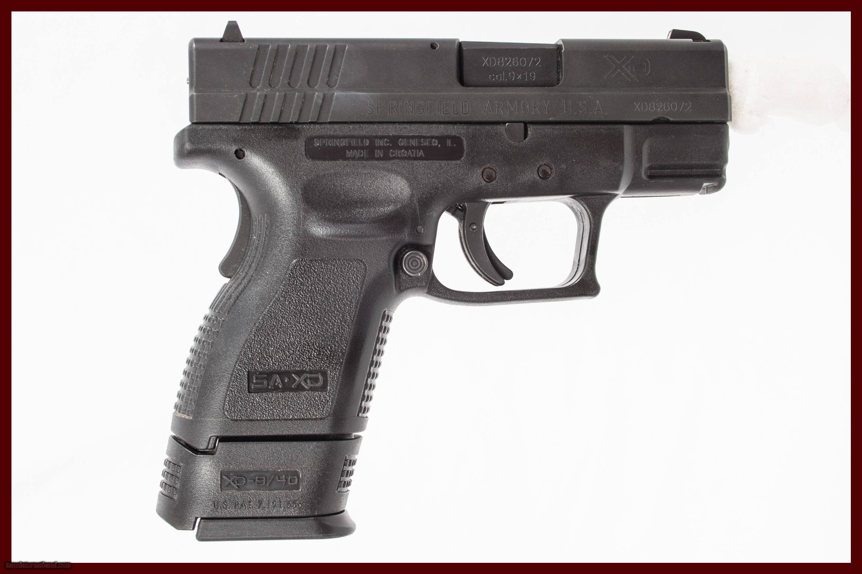 Description: SPRINGFIELD ARMORY XD-9 SUB COMPACT CHAMBERED IN 9 MM WITH A 3 INCH BARREL AND A CASE. THIS GUN IS IN EXCELLENT CONDITION AND IS COVERED BY DURY'S LIFETIME WARRANTY.