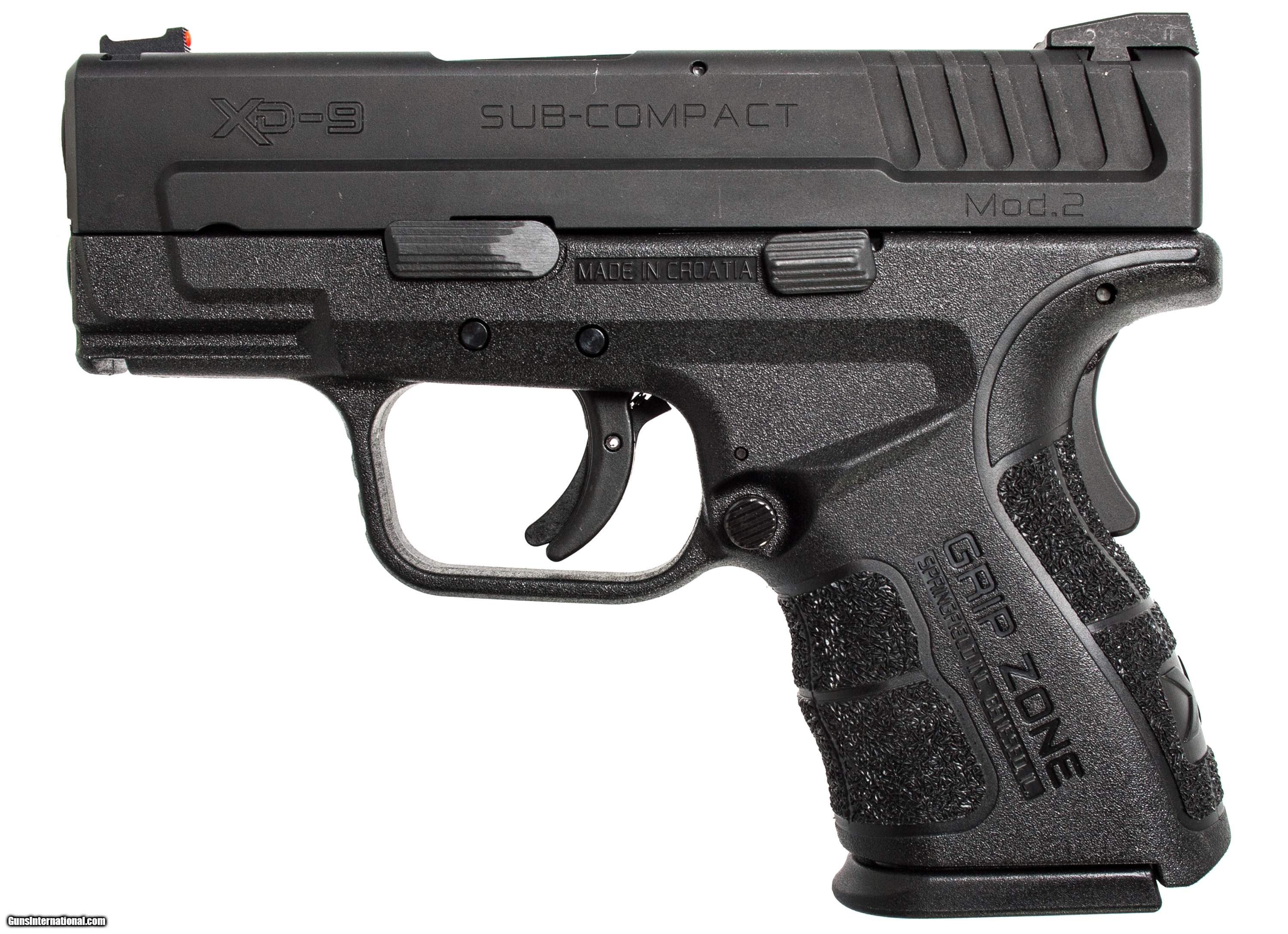 NEW IN BOX SPRINGFIELD ARMORY XD MOD 2 CHAMBERED IN 9 MM WITH A 3 INCH BARREL AND A RED FIBER OPTIC FRONT SIGHT POST. THIS GUN IS IN EXCELLENT CONDITION AND IS COVERED BY DURY'S LIFETIME WARRANTY.