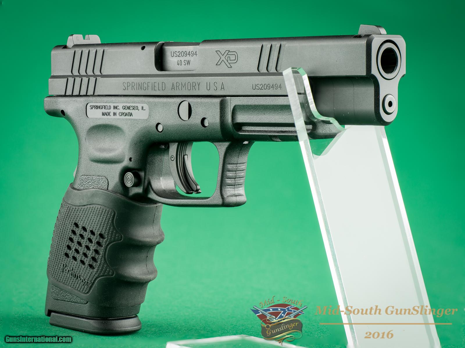 Description: Presented for sale, you will find a Springfield Armory XD40 Tactical chambered in 40 S&W. This pistol is out of an estate. Like most firearms in this collection, this has seen very little if any use. It rates NRA Excellent. The images will illustrate this pistol much better than I can describe. Included in the listing is the pictured XD40 Tactical, two (2) twelve (12) round magazines, cleaning brush, and OEM case. This pistol will ship via FedEx Express Standard Overnight to the lower 48 for $49.95. Thank you for looking. Our phones are answered 24/7 by a human that speaks English. Mid-South GunSlinger Will Sell Your Guns for You!!!
