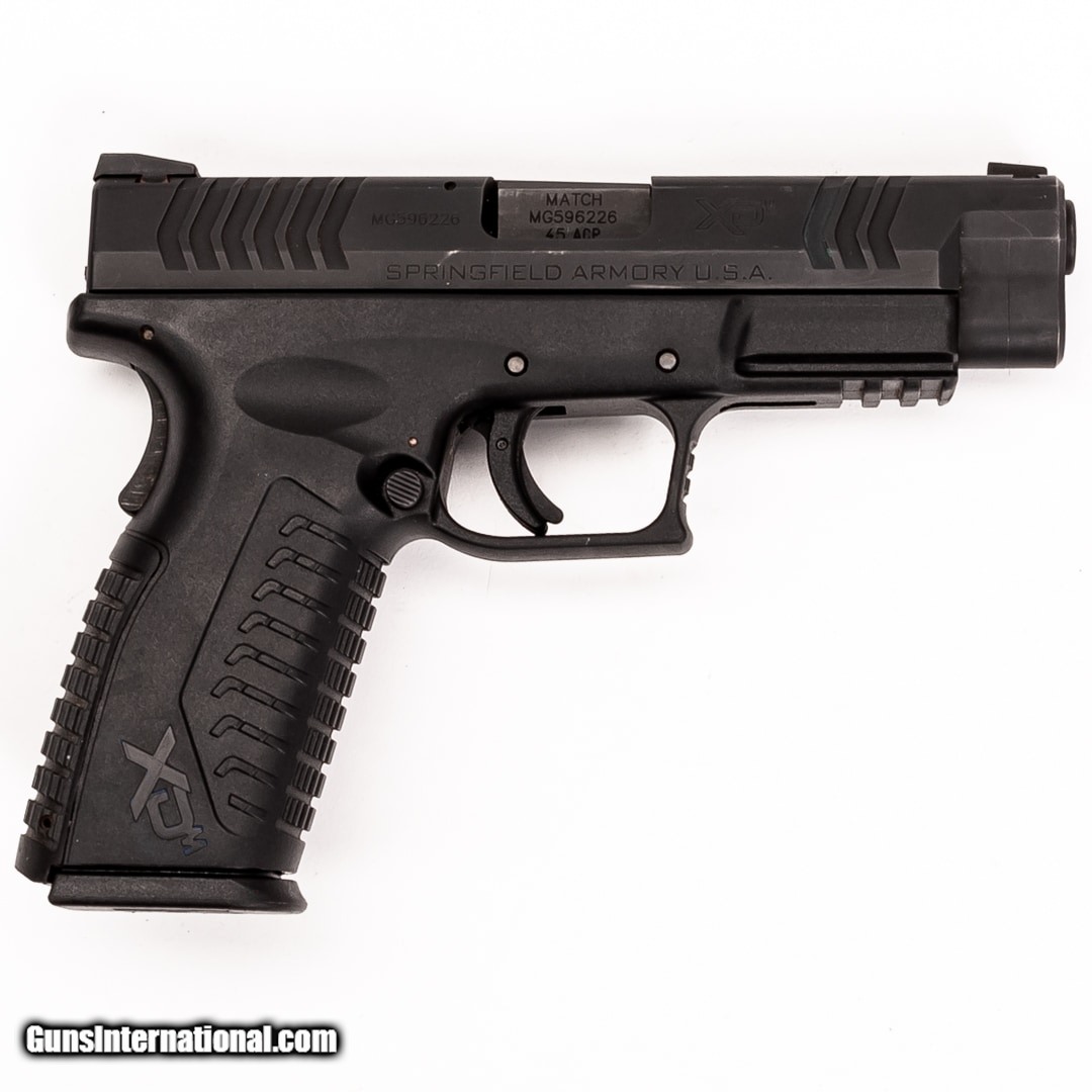Description: Guns Listing ID: 343341 The Springfield XDM-45 4.5 delivers accuracy and reliability like none other, making it a favorite among competitors. The ergonomically sound design, natural shootability, and host of safety features make it equally well-favored for self-defense. This XDM-45 4.5 is chambered in 45 ACP and equipped with a 4.5\" match-grade barrel. It is in very good condition and comes with the original case, two 13-round magazines, three sizes of backstraps, gun holster, dual magazine holster, and a speed loader. SOLD Manufacturer: SPRINGFIELD ARMORY Model: XDM-45 4.5 Caliber Info: .45 ACP Condition: Used - Certified Barrels: 4.5 BARREL Finish: BLACK |