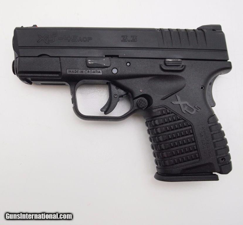 Description: Springfield Armory XDS .45 ACP, 3.3" bbl, bright shiny bore, strong rifling, two white dot notch rear sight, red fiber optic front sight, black finish, replaceable back straps, textured grip, and accessory rail in front of the trigger guard. This pistol is in excellent condition. Add 3% for Credit Card Shipping $25.00 SOLD |