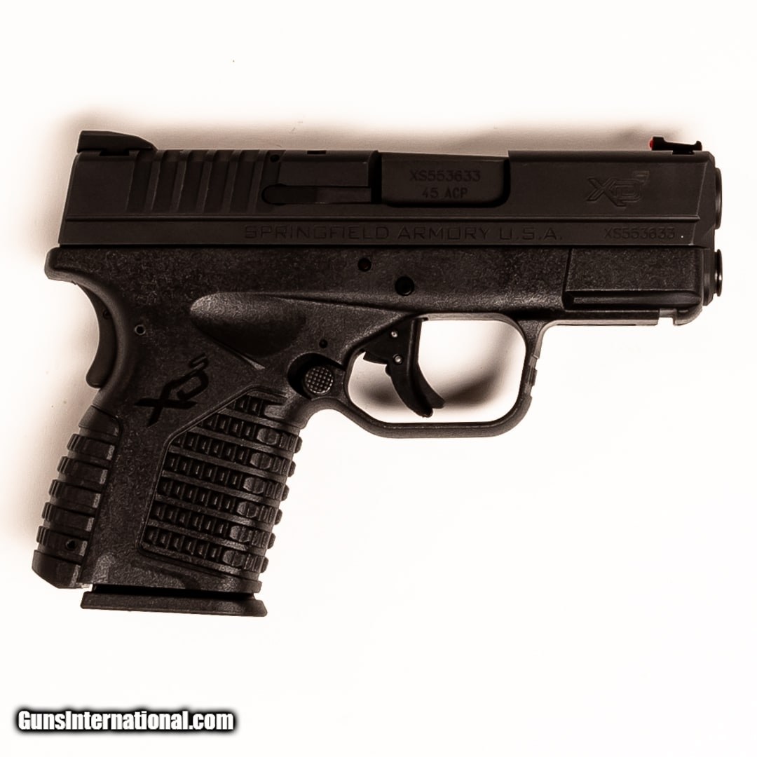 Description: Guns Listing ID: 635540 The Springfield Armory XDS-45 3.3\" is a small semi-automatic handgun designed for concealed carry. It is chambered in 45 ACP, which packs a punch but is still controllable. This XDS-45 3.3\" includes the original case, manual, one 5-round magazine, one 7-round magazine, two mag spacers, two sizes of backstraps, a right-handed holster, and a dual magazine holster. SOLD Manufacturer: SPRINGFIELD ARMORY Model: XDS-45 Caliber Info: .45 ACP Condition: Used - Certified Barrels: 3.3 barrel Finish: BLACK |