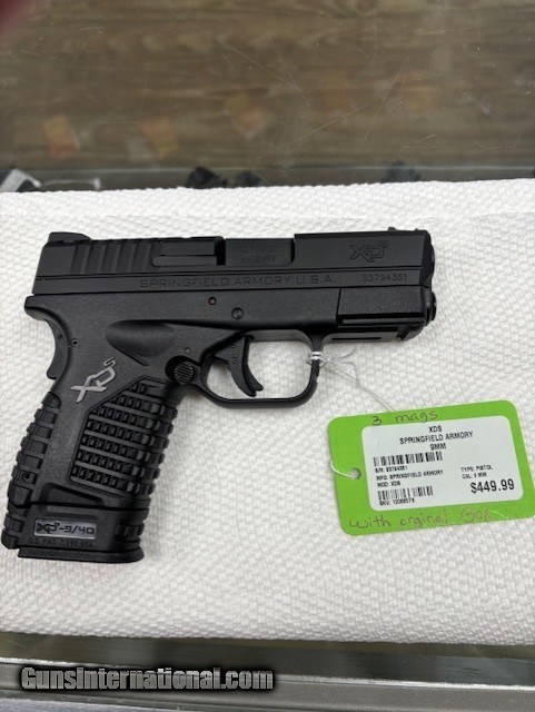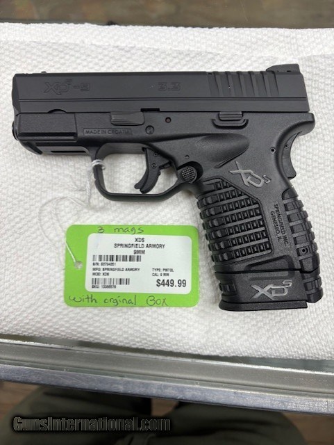 Description: Guns Listing ID: 606186 LIKE NEW Manufacturer: SPRINGFIELD ARMORY Model: XDS Caliber Info: 9MM LUGER (9x19 PARA) Condition: Used - Non-Certified Barrels: 3" BARREL Action: SEMI AUTOMATIC Finish: black Price: $449.99 Contact Seller |