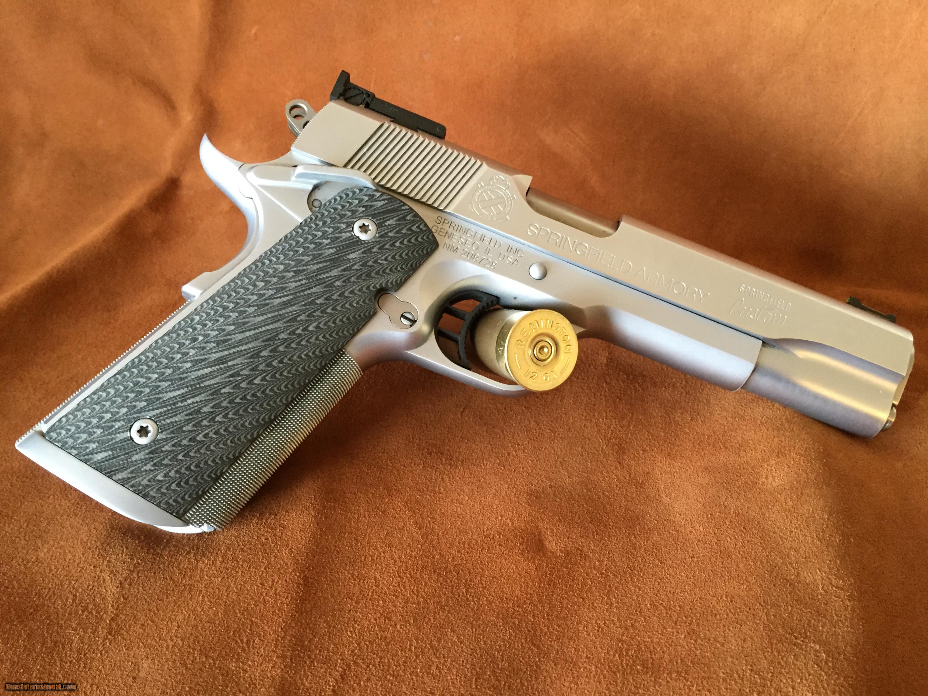 Description: Springfield Armory Distinguished Limited .45 ACP. Pistol comes with 20 Tripp Cobra 8 round magazines. LNIC, fired less than 1000 rds. Perfect Single Stack or CDP division pistol. Full hard chrome finish, fiber optic front, adjustable rea, VZ grey grip panels. Full despription available on the springfield under 'Custom shop'. This is a $3300 pistol new, with a long wait. This one is ready to head to the range today. SOLD Manufacturer: Springfield Armory Model: Distinguished Limited Caliber Info: .45 ACP Bore: Pristine Condition: Like New Metal Condition: Perfect |