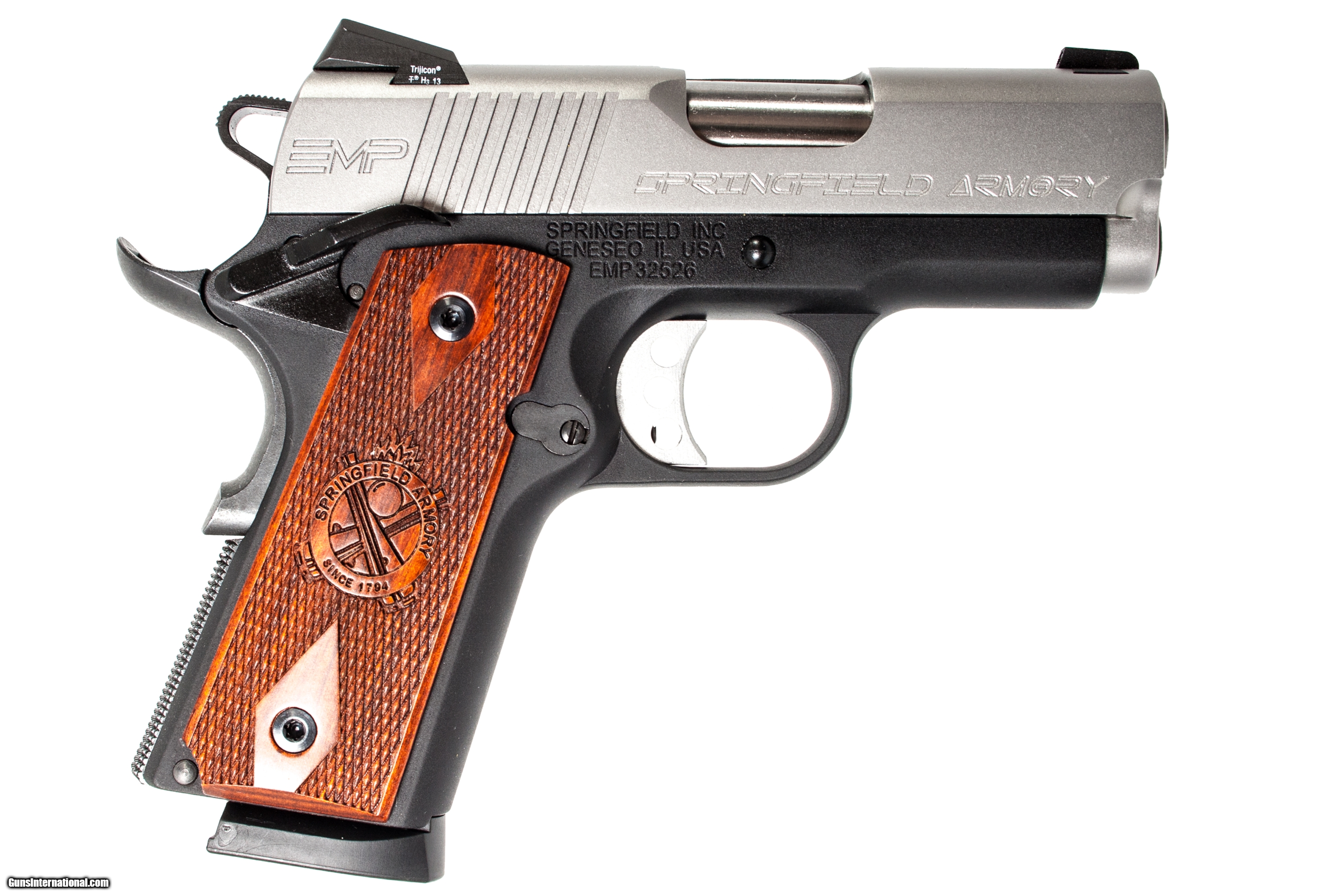Springfield EMP chambered in 9 mm with a 3 inch barrel case and Springfield gear. This gun is in excellent condition and is covered by Dury's Lifetime Warranty.